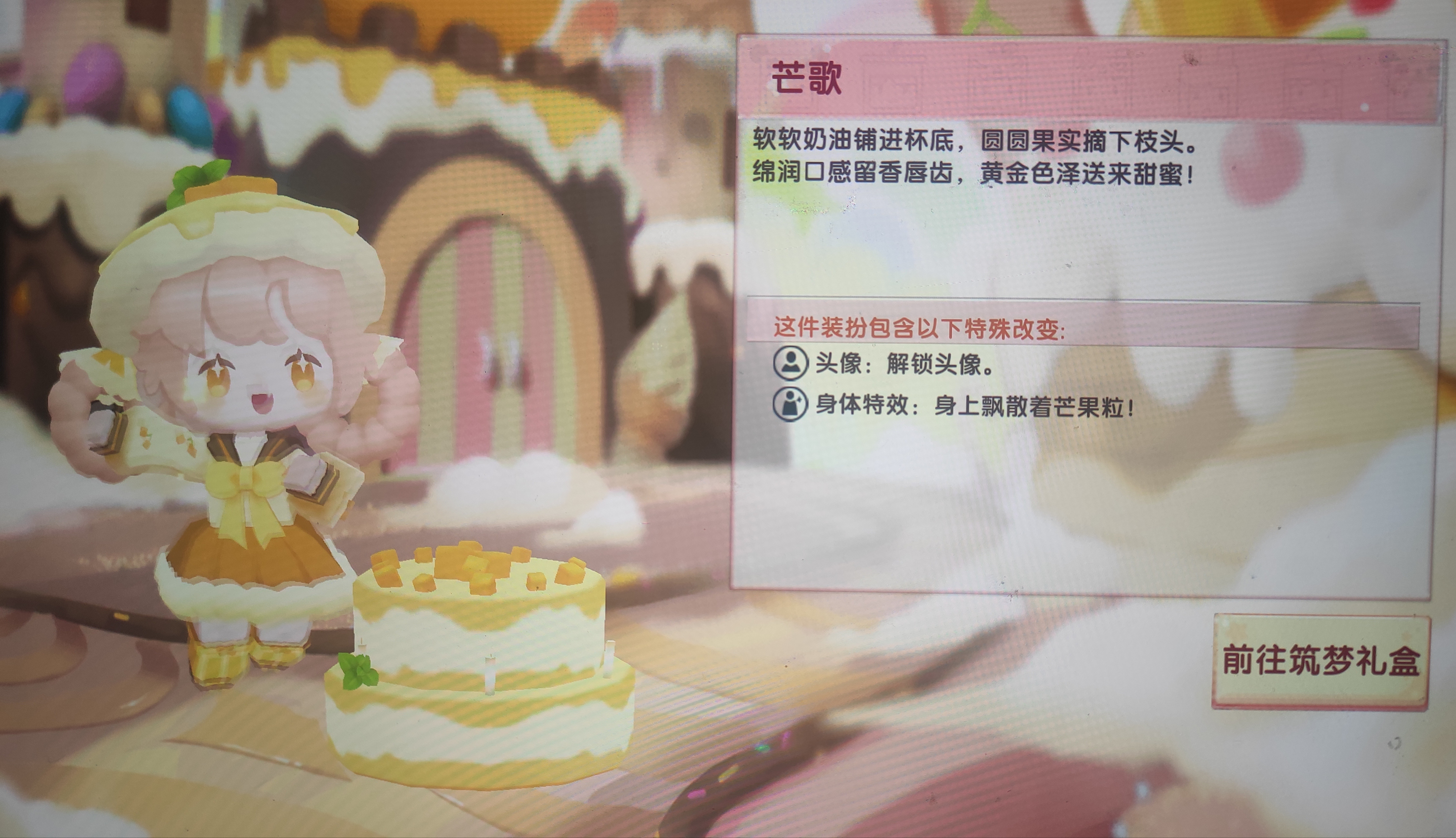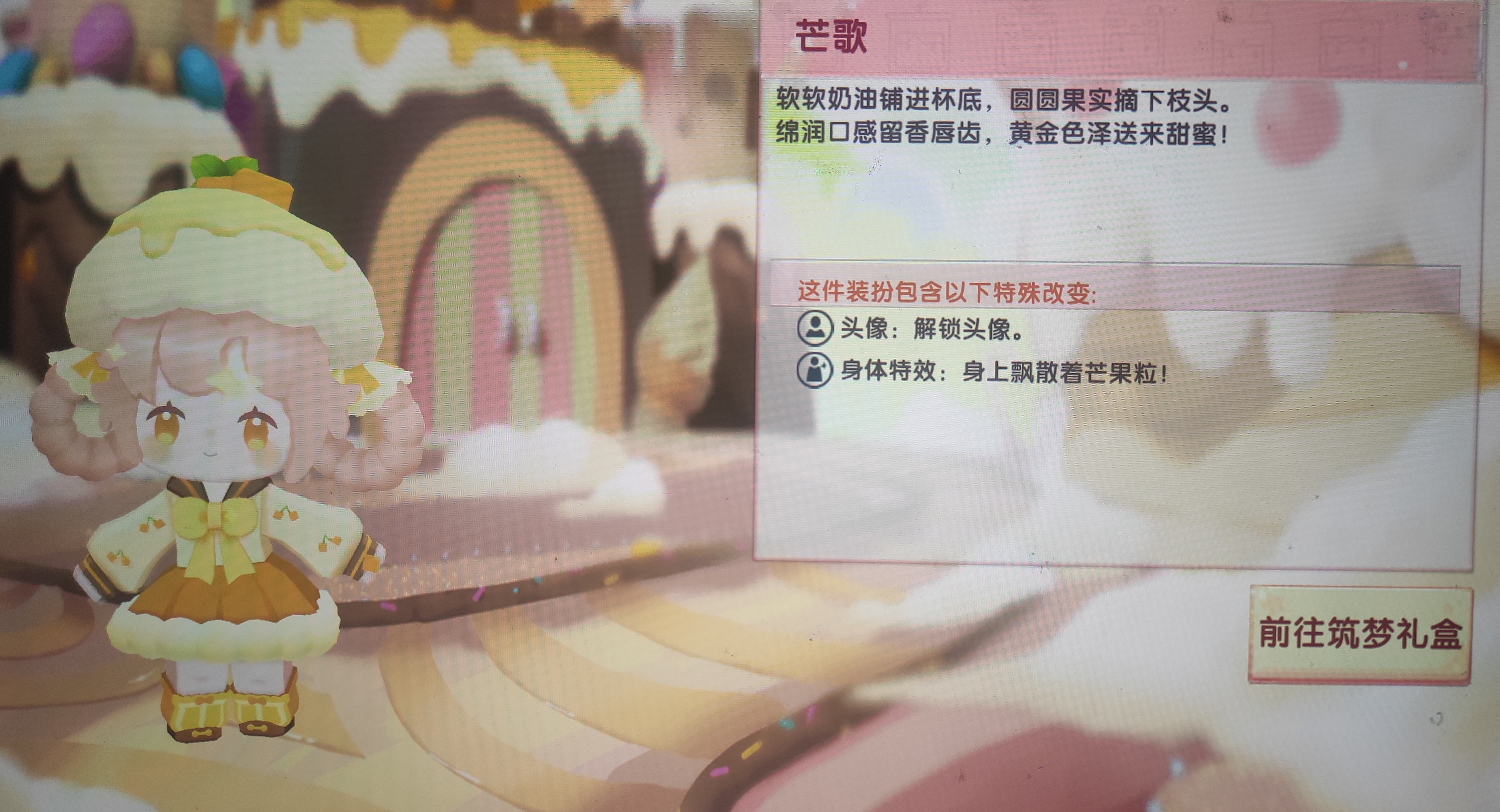 今天,我来介绍一款迷你世界新皮肤,“软软奶油铺进杯底,圆圆果实摘下枝头。绵润口感留香唇齿,黄金色泽送来甜蜜!”这是芒歌的口头禅。