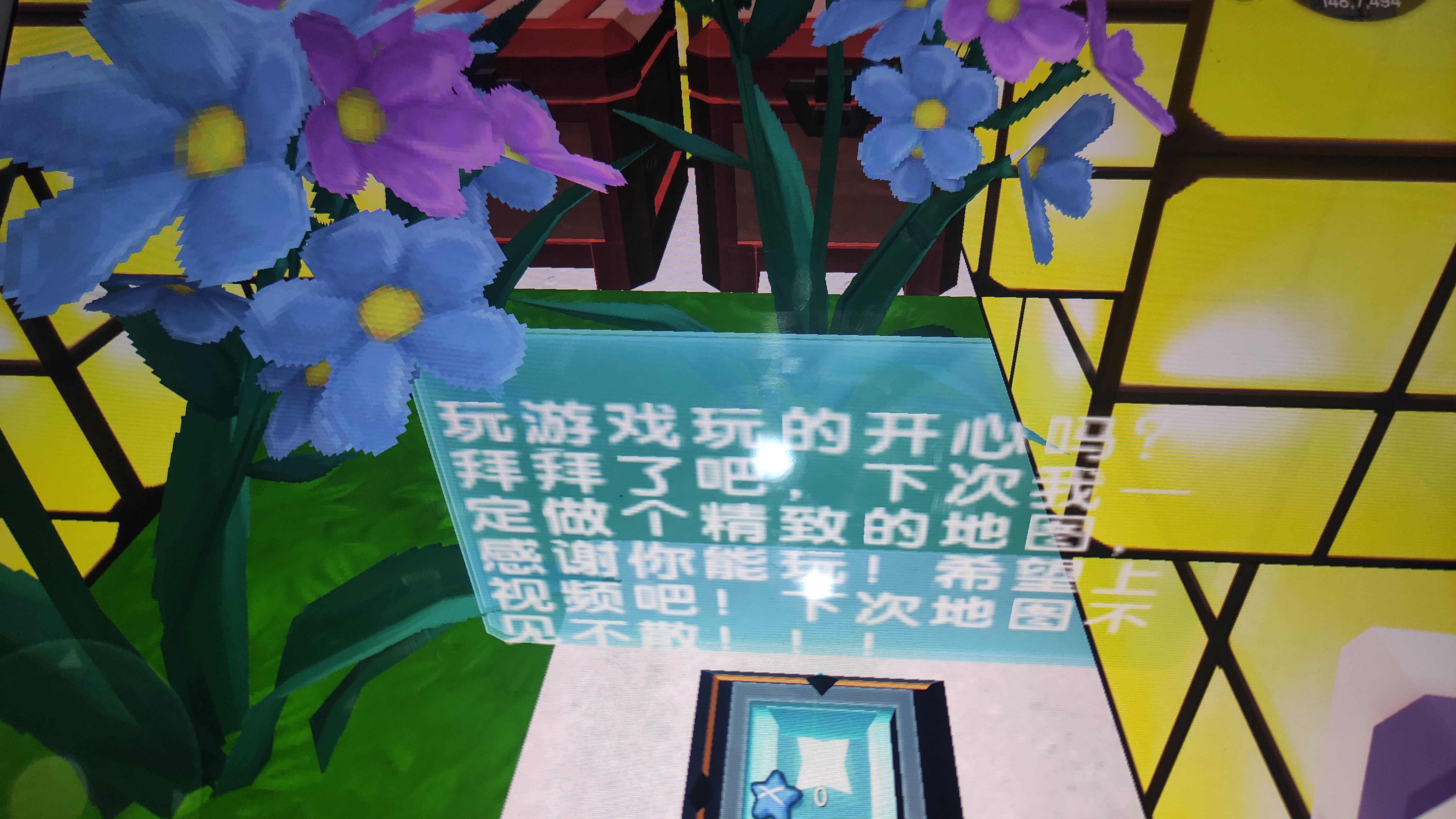送给半拉的地图wx2022 (54)in #cn • 3 years ago 发现一张送给迷你世界主播半拉的地图,地图开始时有一个爱心,上面写着没有,意思是爱心后面的云团下确实没有东西,不像那些坑人地图需要到处去找钥匙。地图很简单,基本上没有坑人的地方,没有堵人的方块,也没有让你下来再找钥匙,或者骗你什么的。而且还有作弊设施,喝饮料跳高或者方块垫脚,就不用担心二段跳跳不上去,还可以通过传送直达终点。 地图里面的背景也很好看,夕阳西下时一抹淡淡的浅紫色晚霞特别迷人。还有其它好玩的,例如建好看的房子什么的。总结下来就是我觉得很好玩,希望半拉姐姐来这个地图打卡。