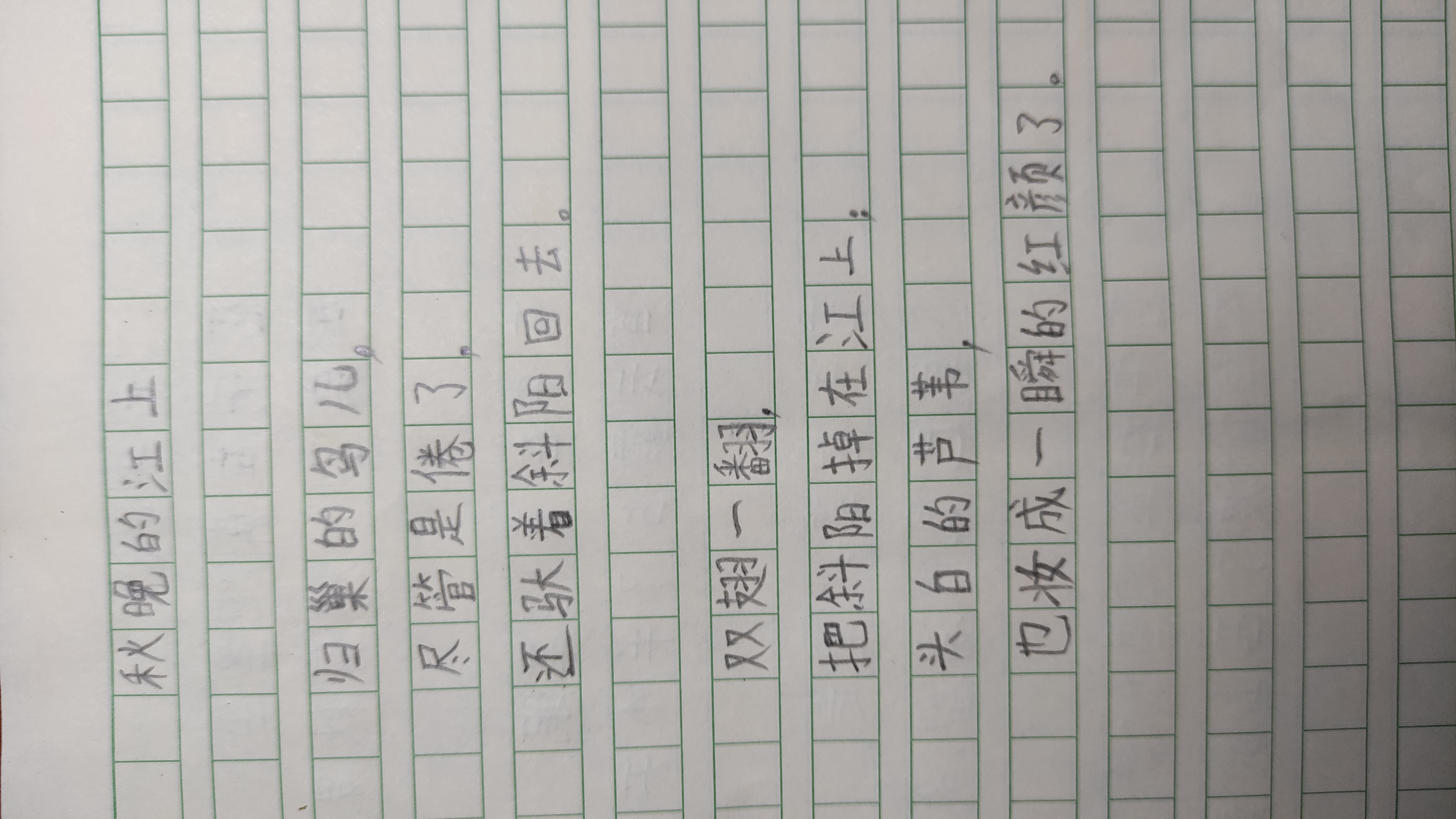 秋晚的江上wx2022 (54)in #cn • 4 years ago 归巢的鸟儿, 尽管是倦了, 还驮着斜阳回去。 双翅一翻, 把斜阳掉在江上; 头白的芦苇, 也妆成一瞬的红颜了。 《秋晚的江上》是近代诗人刘大白1923年的作品,收录在开明书店1926年版《邮吻》诗集中。 这首诗从整体框架上采用了当时流行的小诗体,小幅的描写,简洁的勾勒,散文的句式,即兴的抒发,描绘出了一个江边秋天黄昏时的景象。