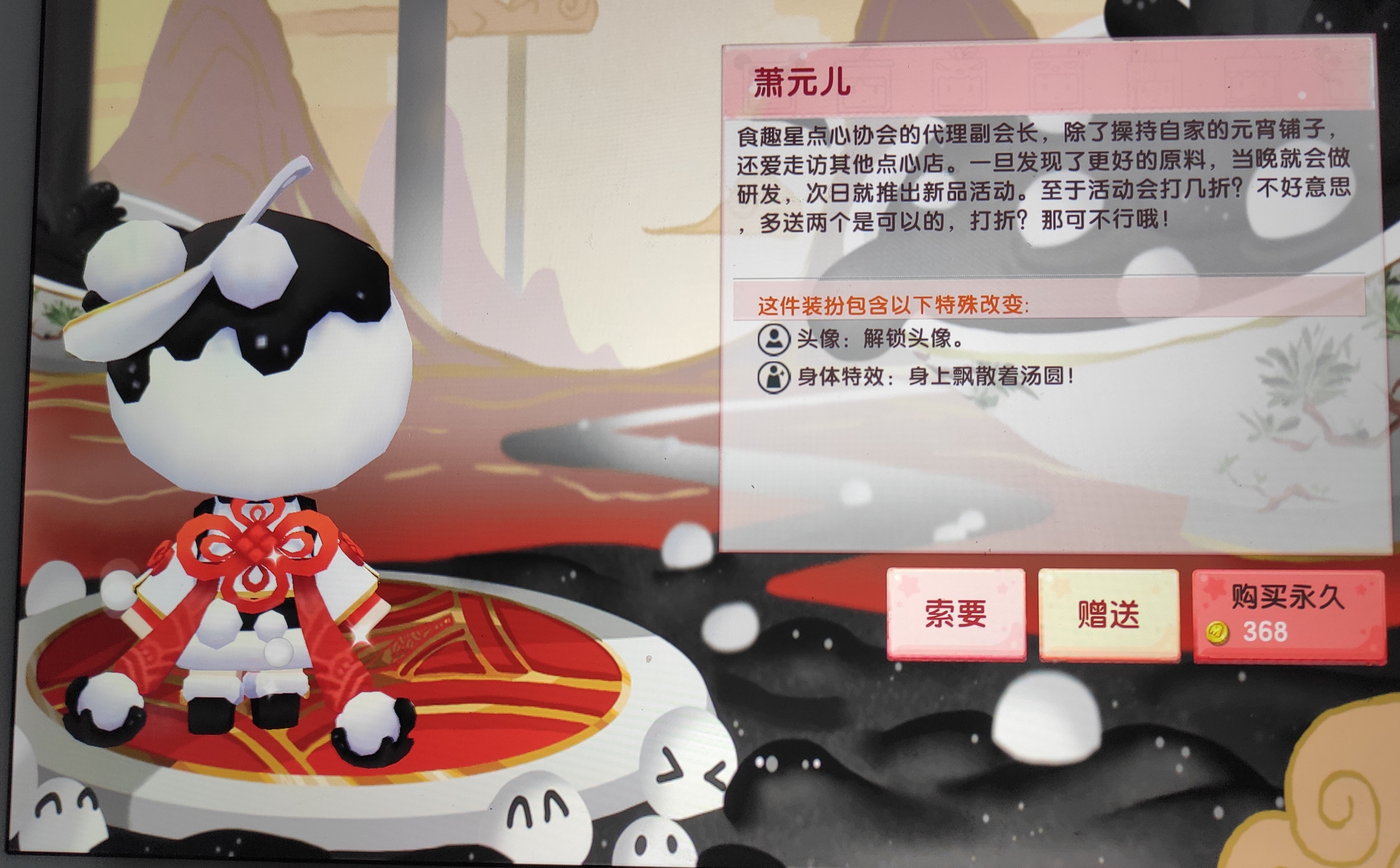 萧元儿是迷你官方为了迎接元宵节,于2月1日专门推出的新皮肤。她的整体设计感很贴合元宵节的主题,帽子大大圆圆的好似一颗大汤圆,帽顶上还装饰着两颗仿真的小汤圆和勺子。