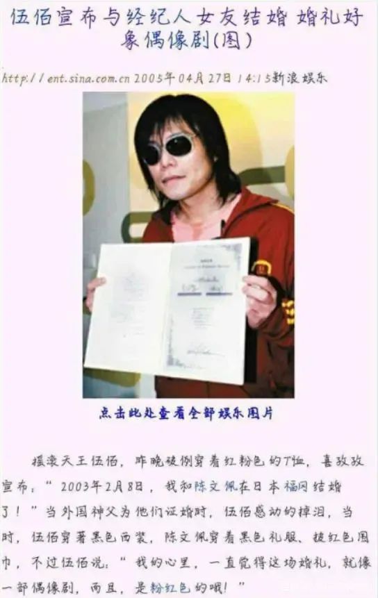 许多明星结婚还藏着掖着,生怕别人知道,伍佰却大大方方地把结婚证在记者面前展示。