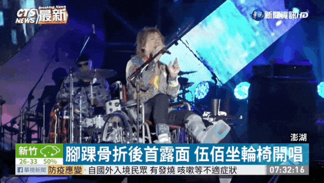 遇到挫折时,许多人总是轻言放弃,但伍佰却告诉大家,骨折了,哪怕坐着轮椅也要让别人听见你的声音。
