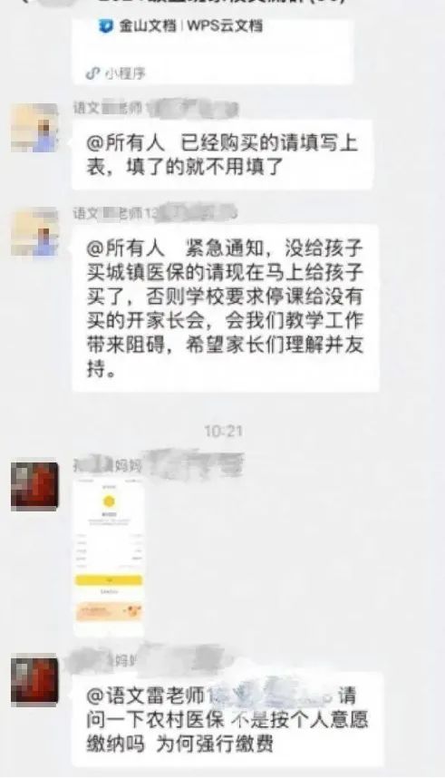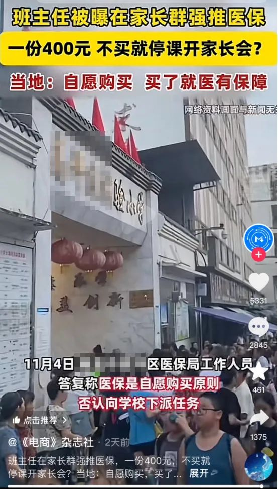 今天是买医保,明天又可以是别的事,一旦开了个头,以后无论什么事都会要找学校,找老师,通过拿捏孩子,给家长施压。