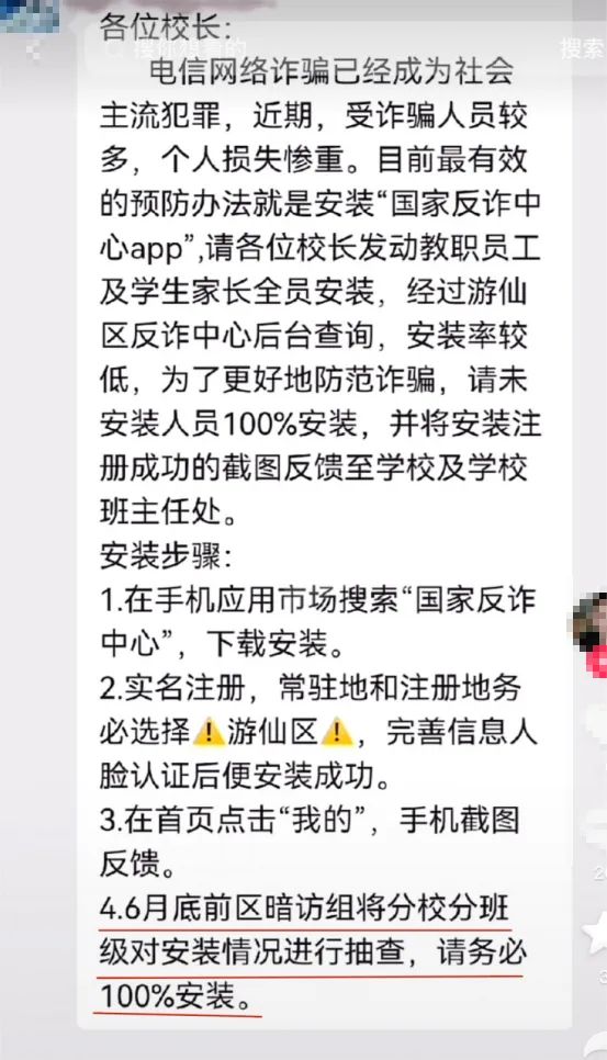国家反诈APP也进校园了,要求学校和班主任动员家长安装。