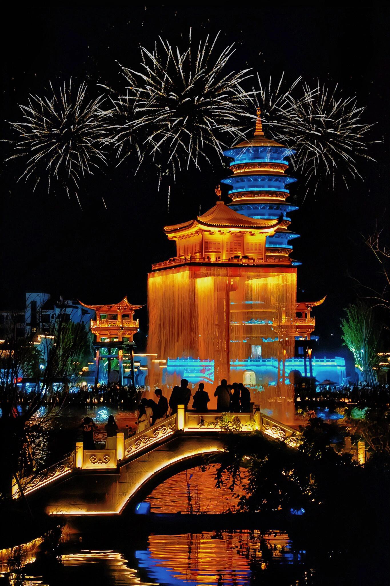 在这里真的有一种梦回大唐盛世的感觉!令人惊叹的烟花表演,船只在桥下左右穿梭~大街小巷都热热闹闹,快乐的氛围会互相渲染