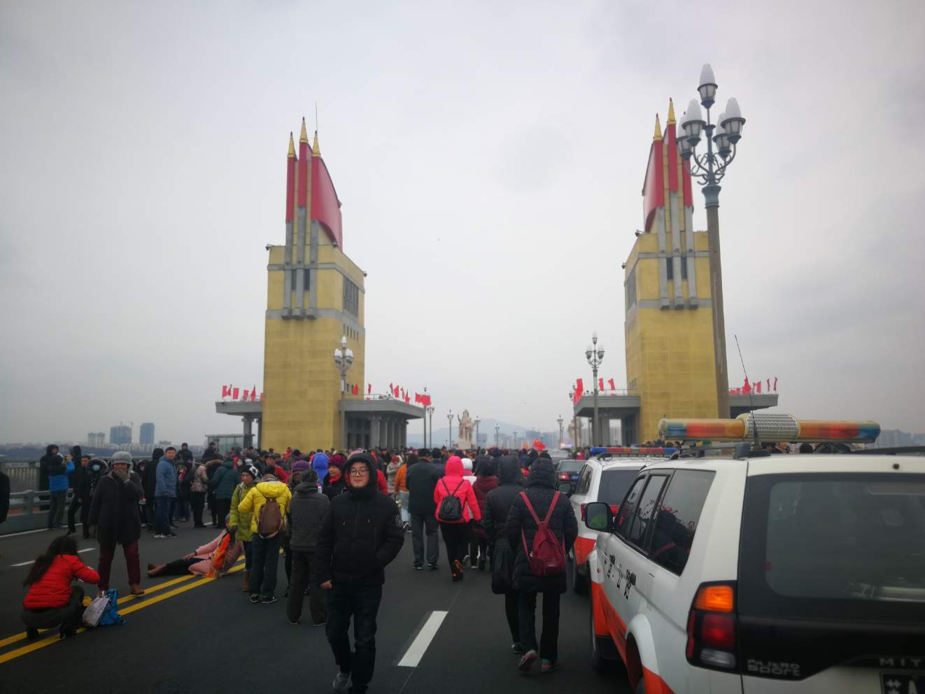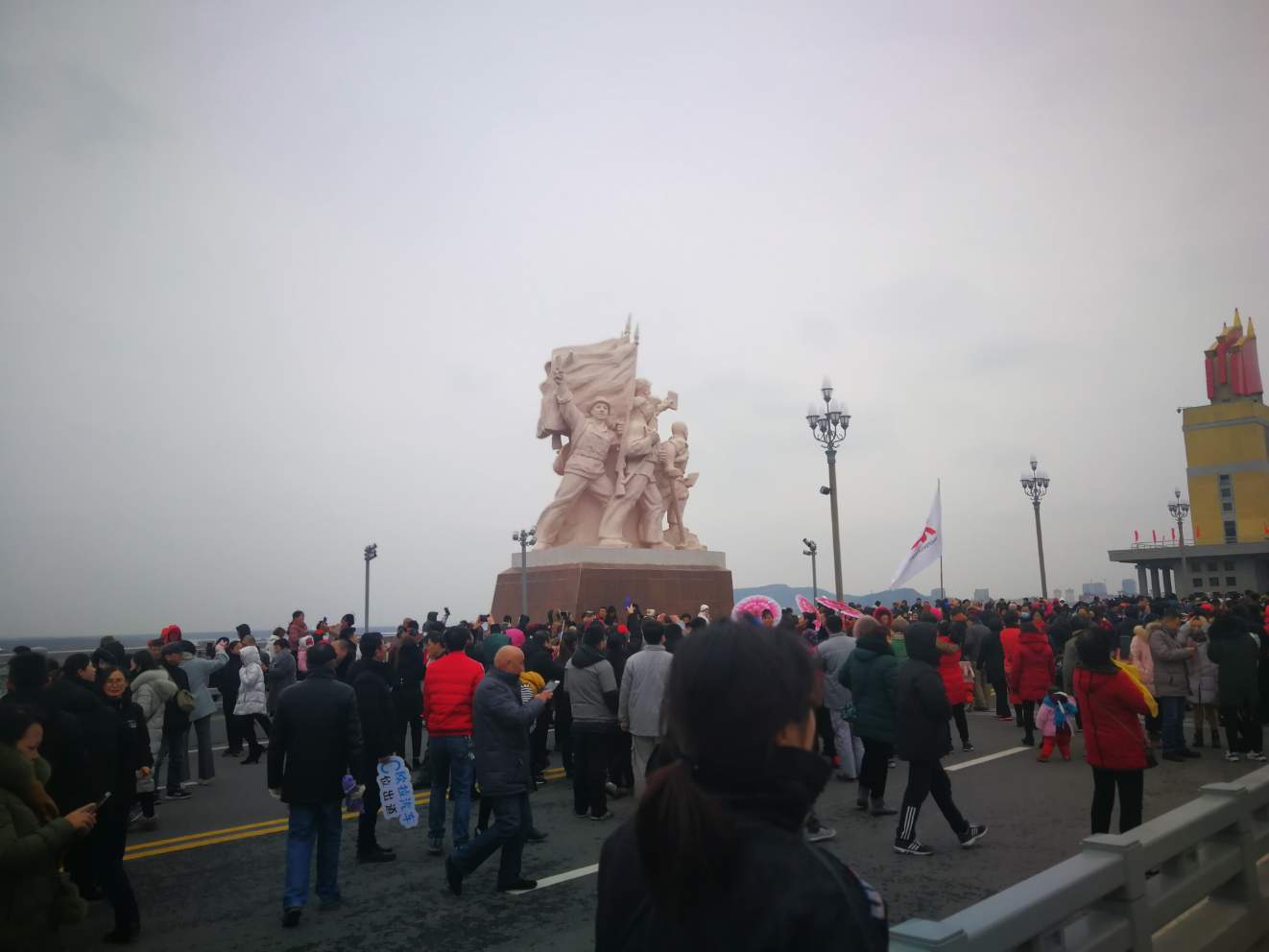 已经快走到江边了,回头拍了一张,桥上的人很多,江风这时候还不是很大。