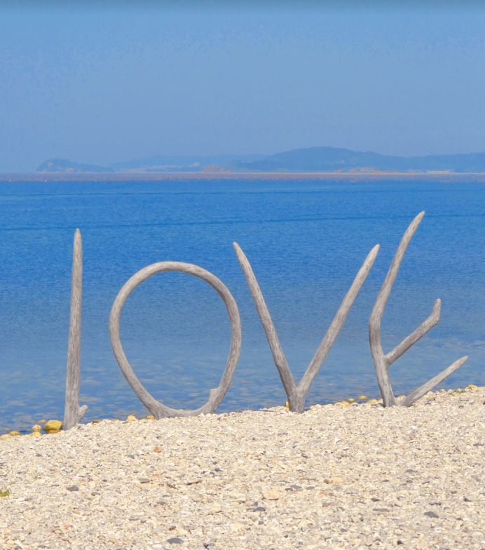 赶海园的砣尾长滩,鹅卵石铺在大海中