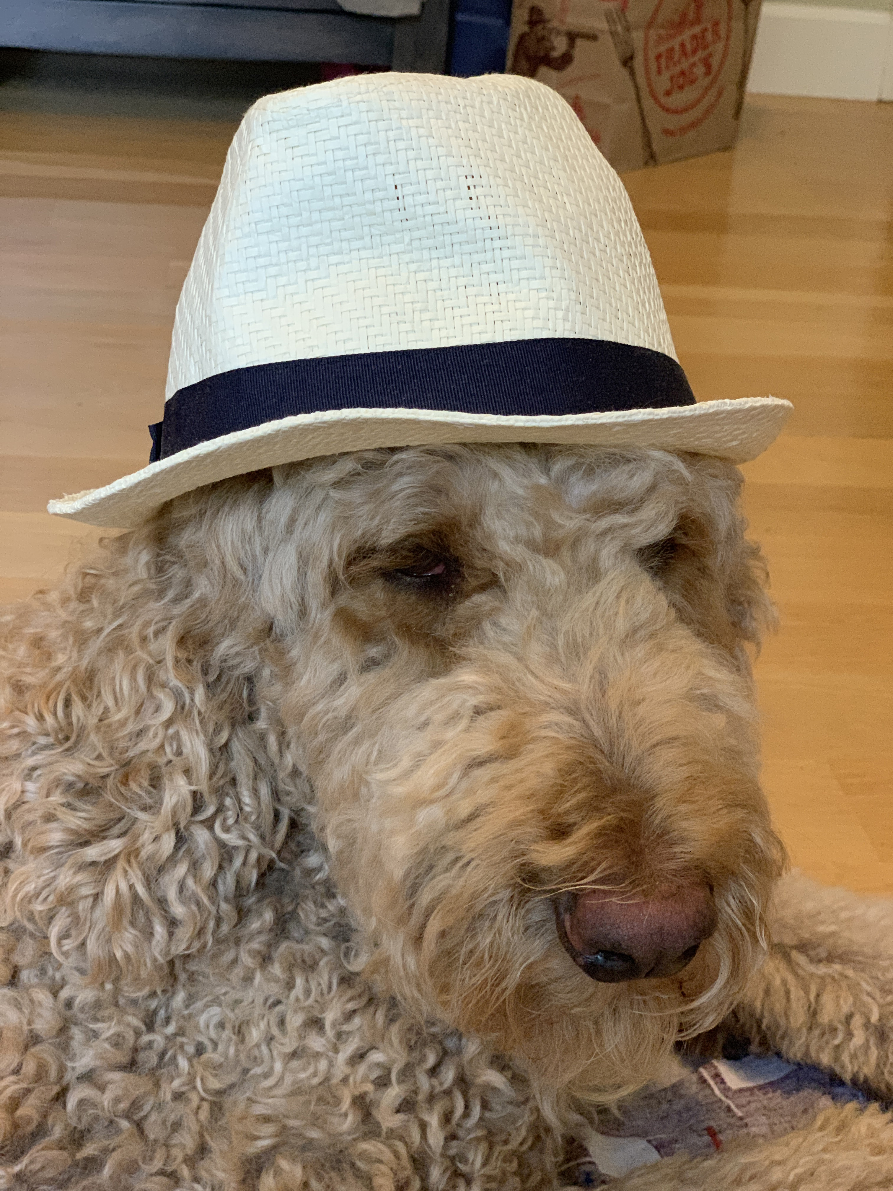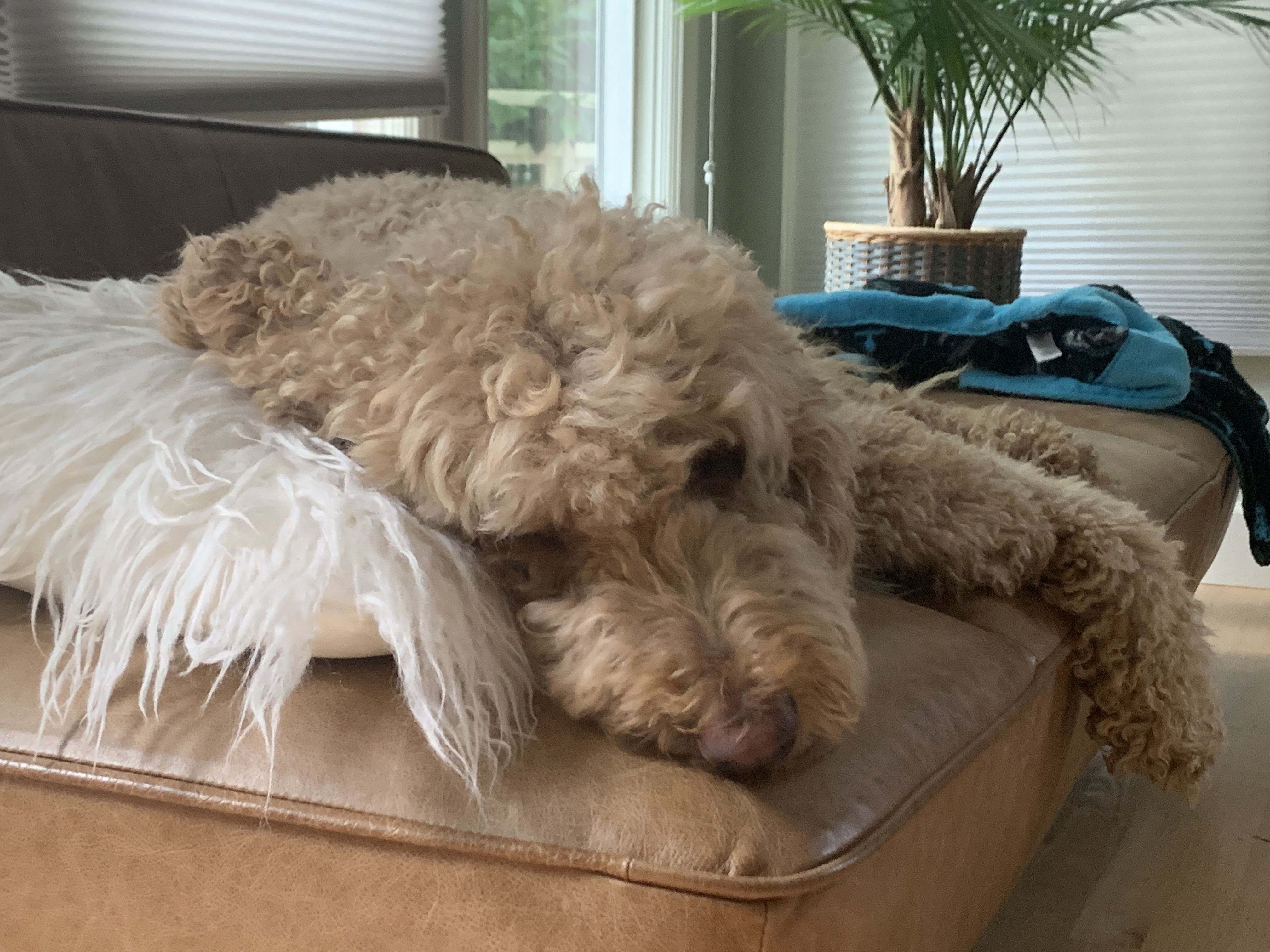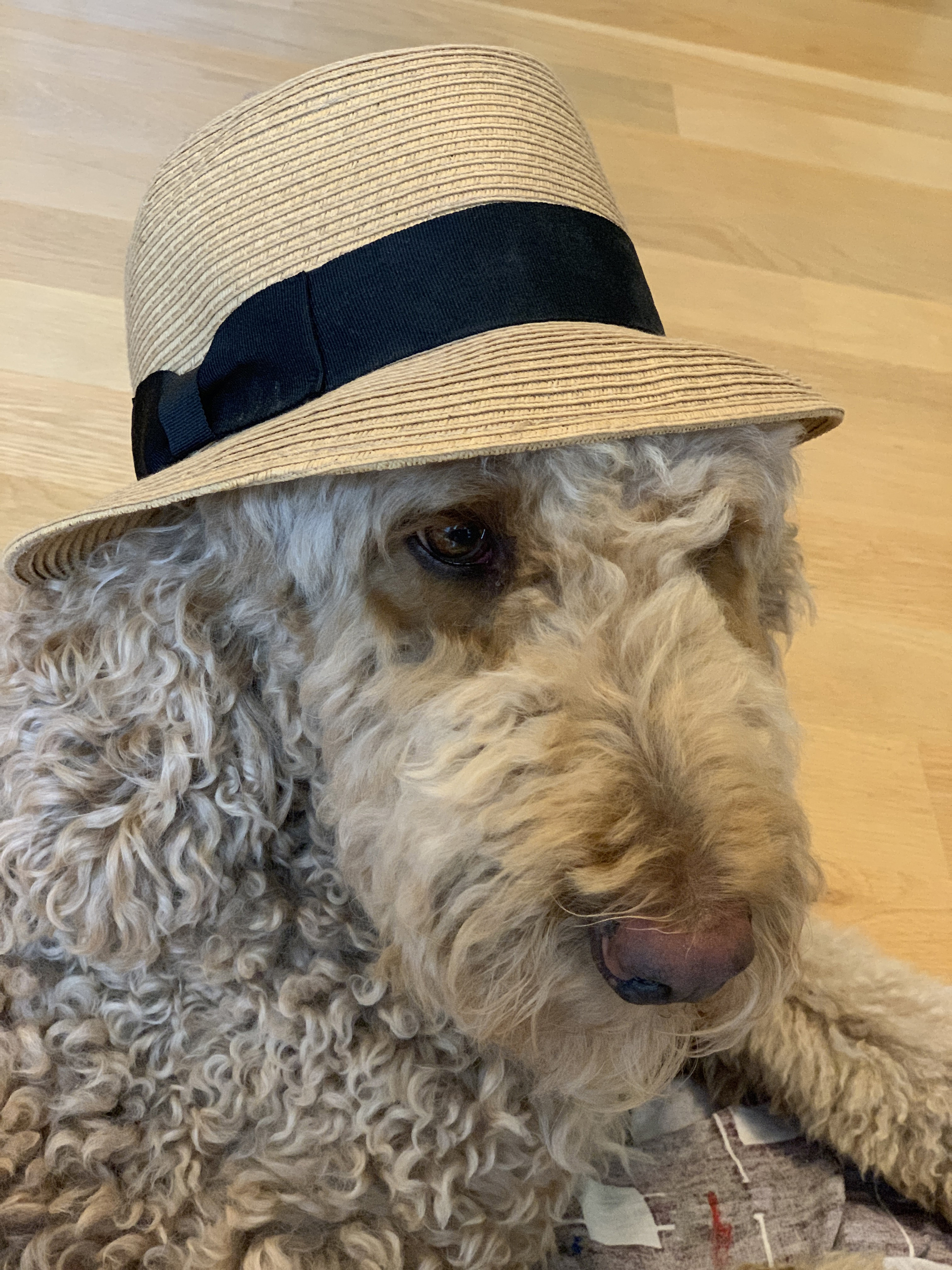 话说这公主是个混血,狗界俗称“串”,3/4血统来自poodle国内叫巨贵,1/4血统来自Lab国内叫拉普拉多。跟half/half的串不同,咱这公主更接近poodle,所以腿跟脸都要长那么一丢丢,性格上也接近巨贵,绝对高冷范。