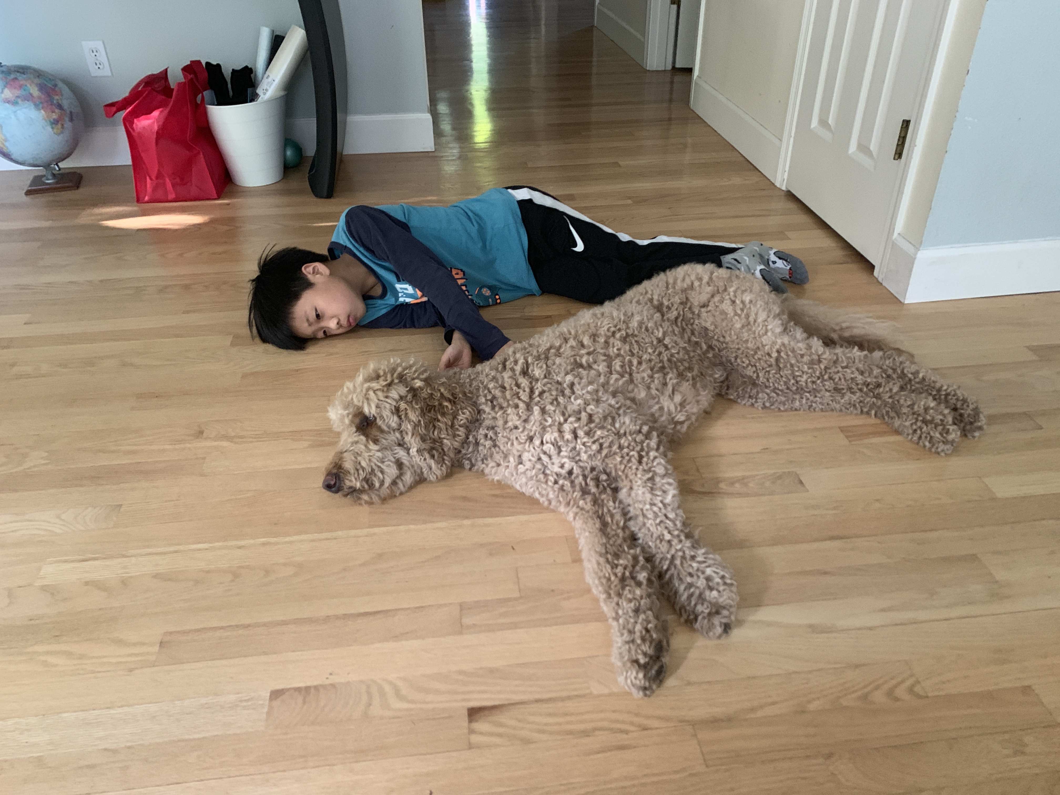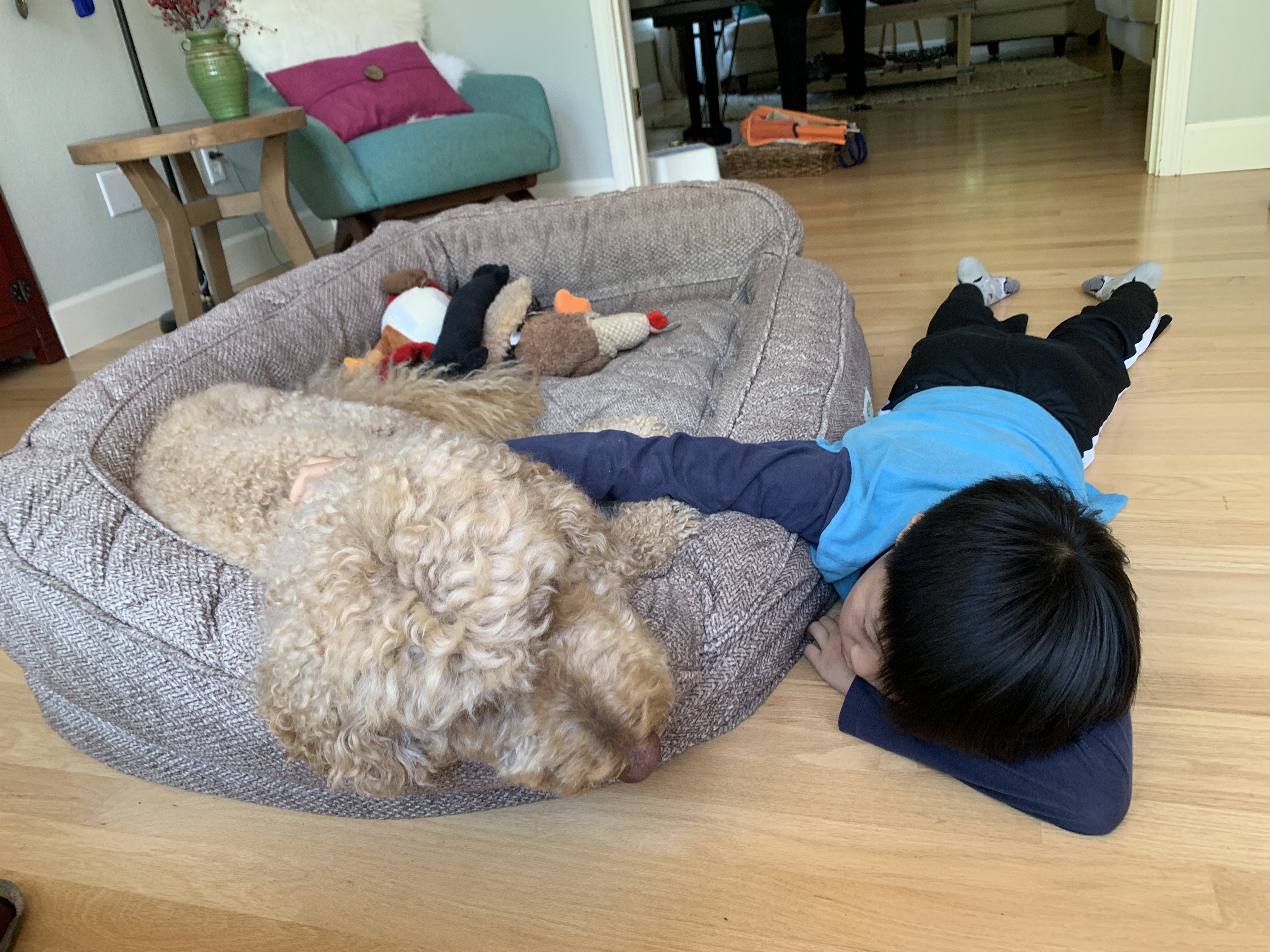 只要娃一弹琴,公主就趴在琴边开始呼呼大睡,我打趣娃:“贝多芬这么激情澎湃的曲子都让你弹到狗狗睡过去啊!”
