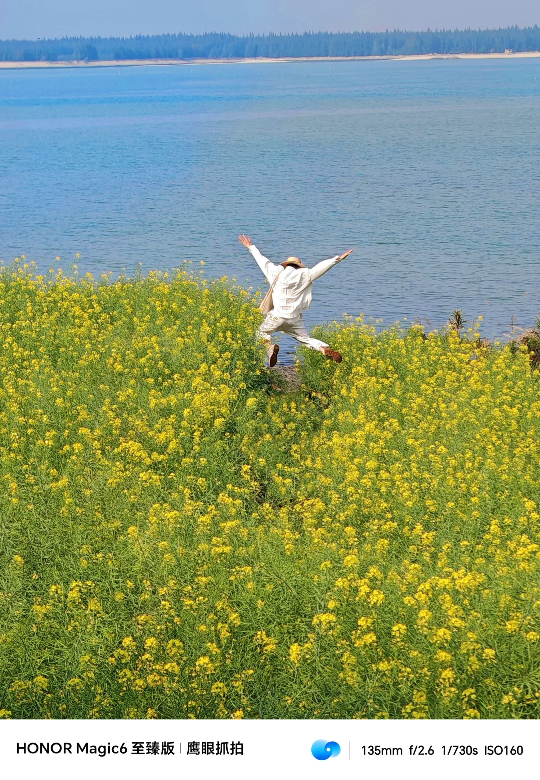 ❷在花田中奔跑跳跃,用手机的鹰眼模式拍摄,可以实现自动快速抓拍,拍出自由松弛感。