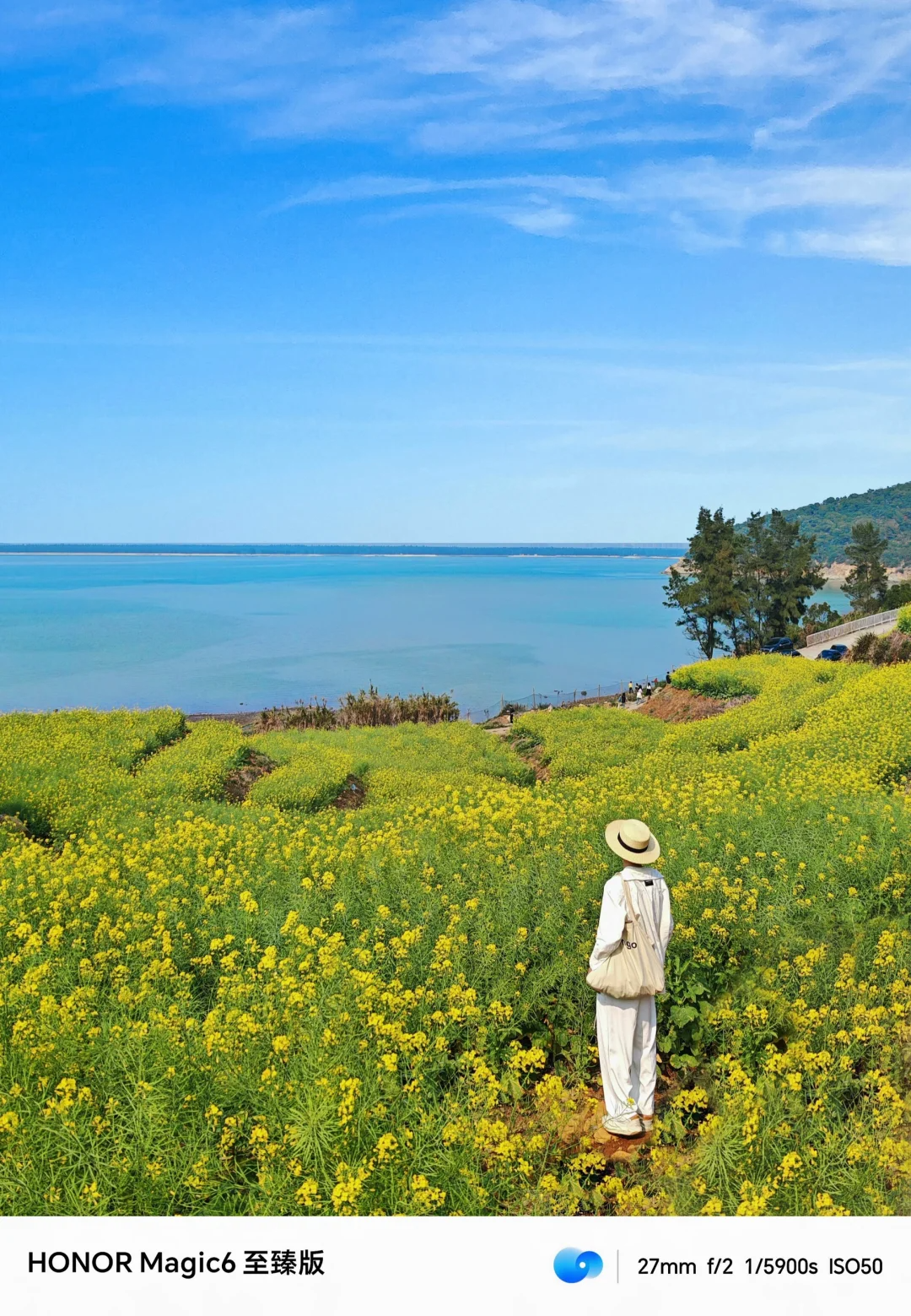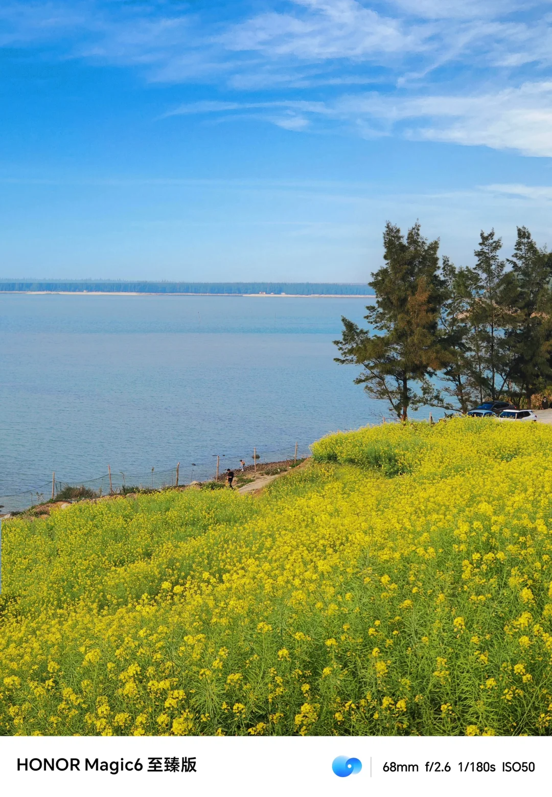 一面大海一面油菜花田