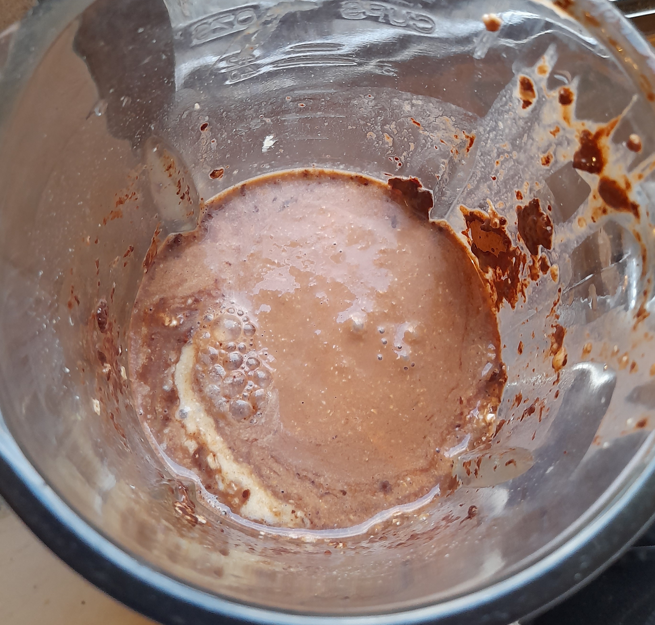 Primero pelamos y cortamos el cambur, seguidamente lo añadimos a la licuadora al igual que el resto de los ingredientes; como la margarina, los huevos, el cacao en polvo, la avena, el bicarbonato, polvo para hornear, sal y la leche líquida.