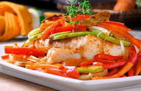 4- Sirve el pescado con los vegetales calientes.