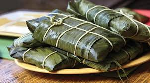 otra parte, las hojas de plátanos se limpian y se cortan según el gusto del