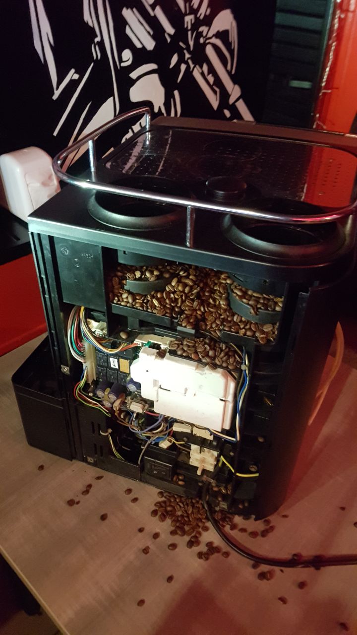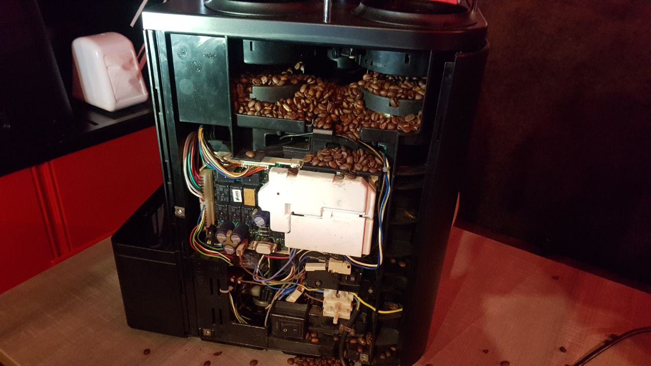 There is a door on the rear panel of the coffee machine, opening which you get access to the valves of the coffee bins...