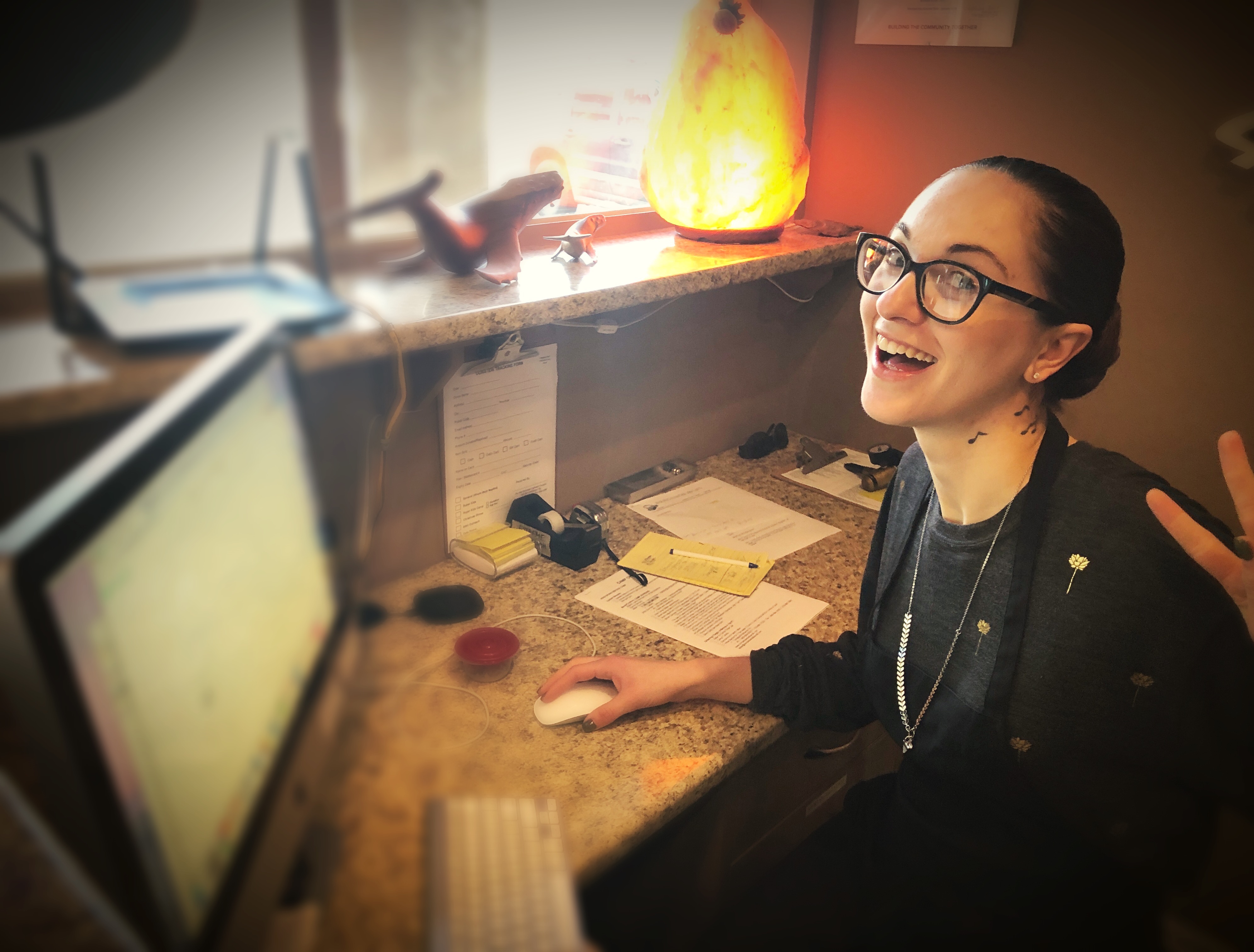 Hard at work doing social media for the coffee house. See you next time, and please don't forget to upvote us for more fun, daily posts!