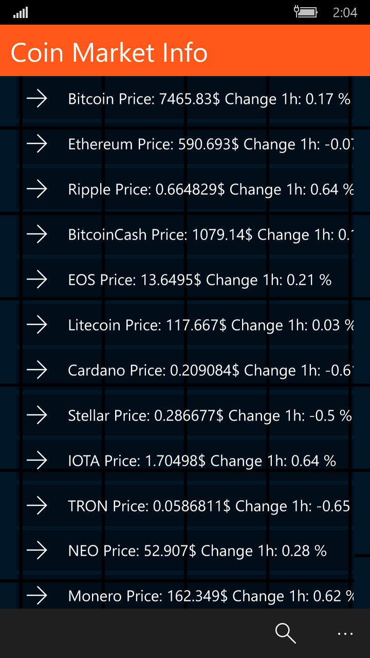 With Coin Market Info you can Track the Price of Bitcoin, Ethereum, Litecoin or any Coin that you like. Over 100 Coins are in the Database included.