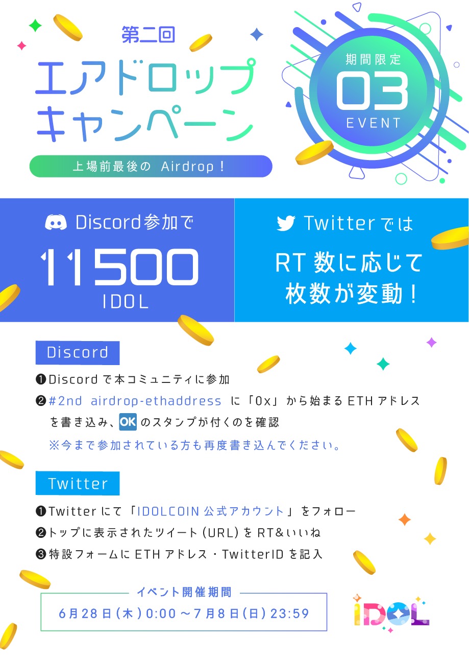 その名もアイドルコイン名前の通りアイドを支援するためのコインです!最近ではディスコ内でビンゴ大会やらレベリングやらでエアドロップやっております!https://discord.gg/gdgBHxp