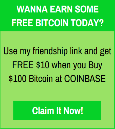 If you sign up using my friendship link, you will be rewarded FREE $10BTC when you transact just $100. For instance, if you buy a $100 BTC or any four cryptos on Coinbase, you will be given $110 - all yours to keep.