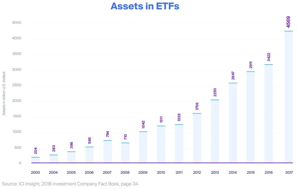 Introduction of index funds Exchange Traded Funds (ETFs) provided investors to receive higher return rates than those run by investment experts. Creation of ETFs on the other hand, has made index strategies easily accessible to people in developed markets. Therefore, passively managed bundled investment products such as ETFs have become a reliable and low-cost methods for retail investors to obtain a diversified portfolio of asset classes without the need to research on the assets exist in the market. These features of ETFs made them popular among other investment tools, increasing the amount of assets invested in amount each year.
