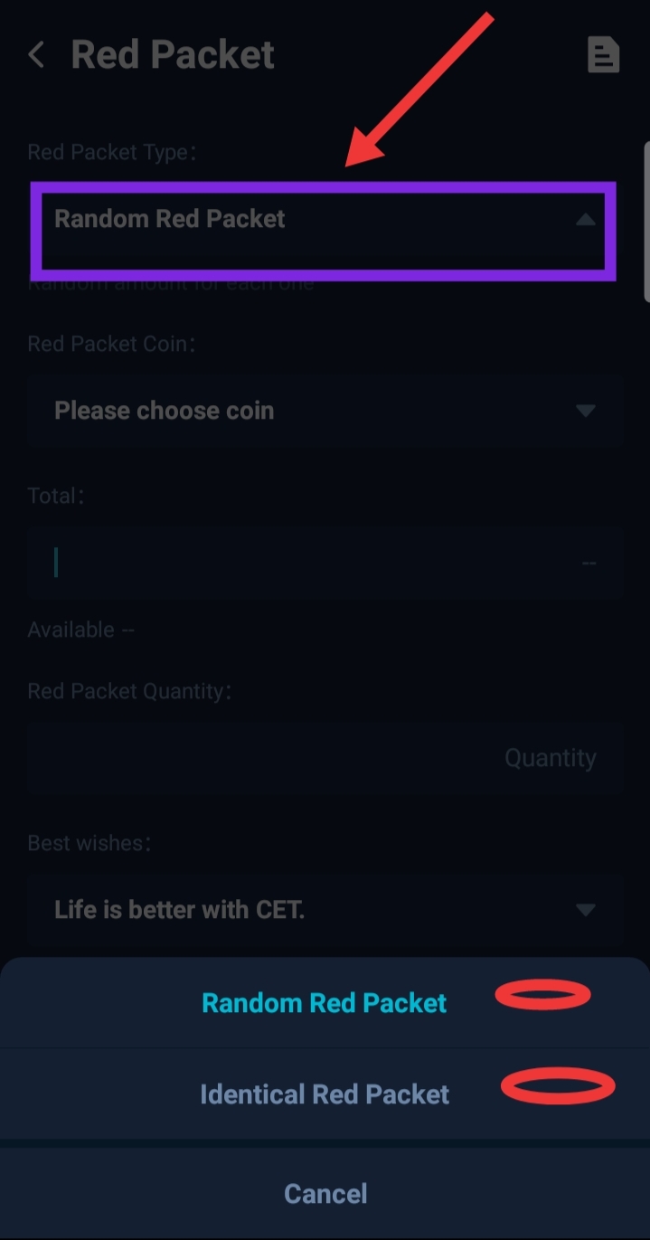 - Select the "Red Packet Type"