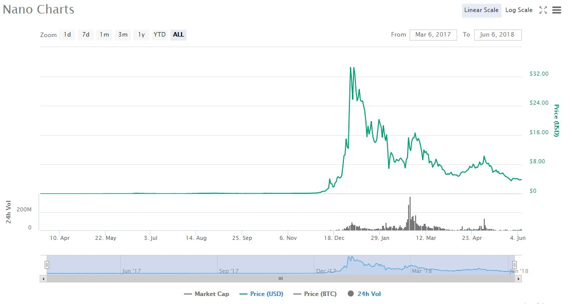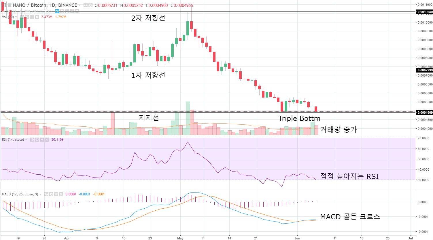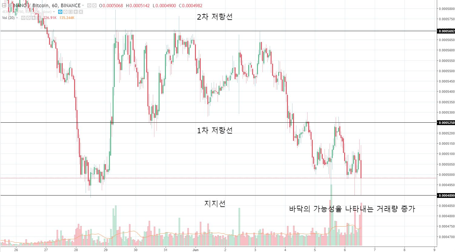 최고점 $34.42를 찍은 후 지금 $3.80의 가격대에서 머물고 있습니다. 해외 커뮤니티에서 엄청난 인기 몰이를 한 코인으로 지금은 열이 식어가는 모습을 볼 수 있습니다. 저는 NANO에 대해서는 장기투자 종목으로도 괜찮다고 생각되며 지금의 차트 위치에서는 트레이딩을 시도할 만한 자리에 왔다고도 생각되어 집니다.