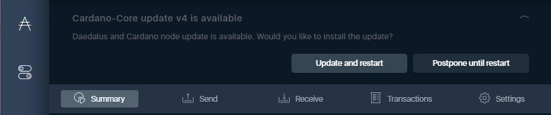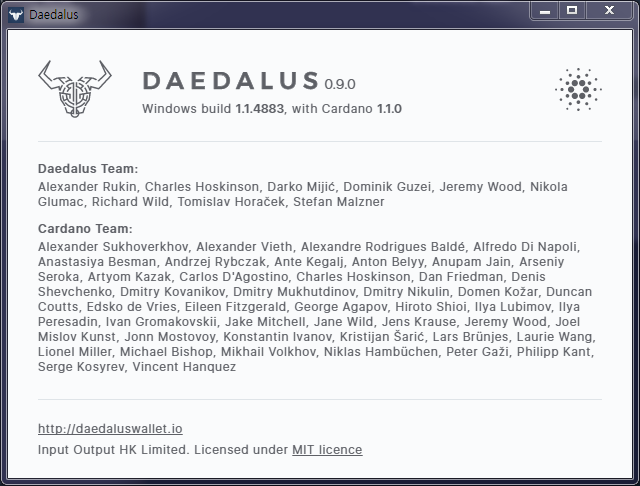 다이달로스의 버전 뿐만아니라 빌드번호와 카르다노체인의 버전도 표시되었다.