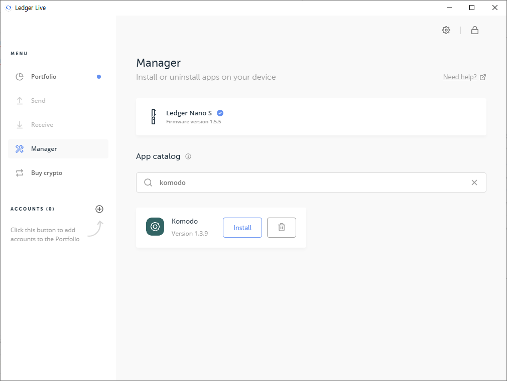 렛져지갑에 코모도 설치