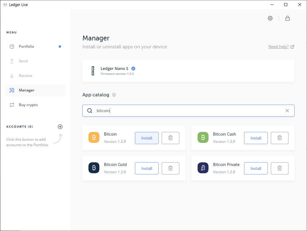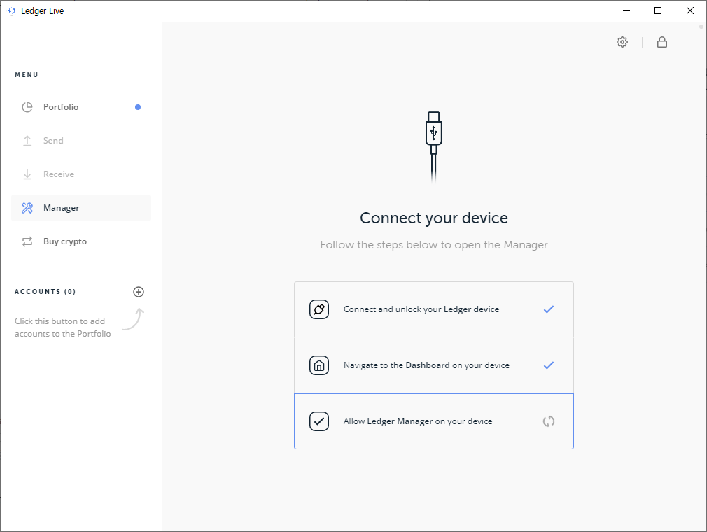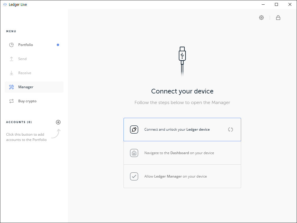 ▶ 다운로드 링크 : https://shop.ledger.com/pages/ledger-live렛져 라이브에서 왼쪽에 "Manager"를 눌러주세요.