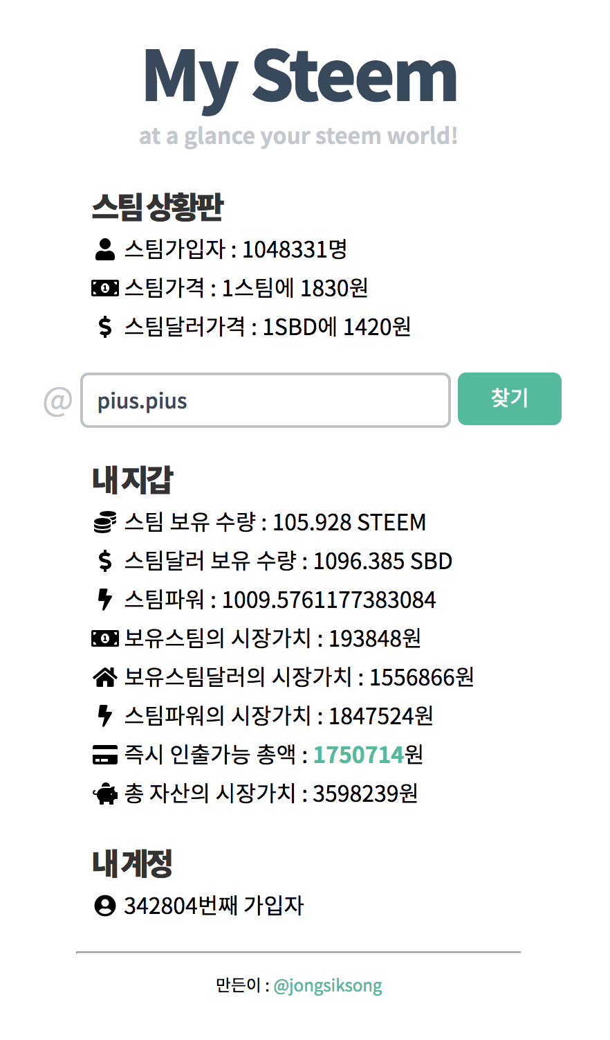 스팀잇 현황과 내 지갑의 정확한 시장가치를 한눈에 볼 수 있는 간단한 유틸리티, 마이스팀을 개발중입니다