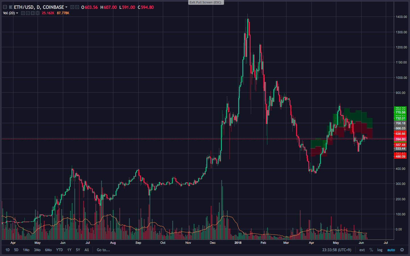 Ethereum의 내재가치 (Intrinsic Value) $670 (Ethersca.io 기준 현재 가격 $595.04)