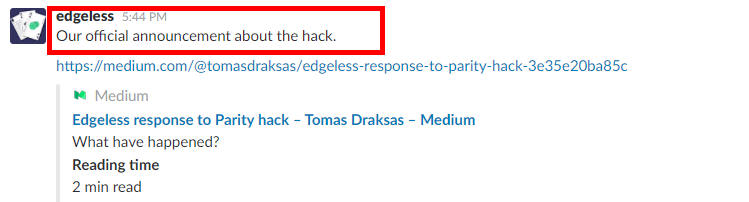 [EDG 해킹사건 답변] Edgeless response to Parity hack