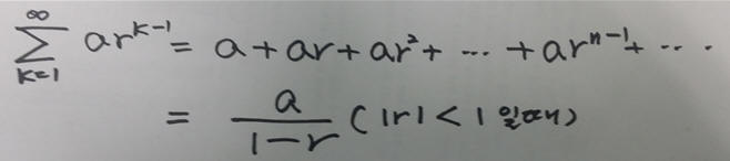 이 식은 고등학교 때 수학교과서에 나왔던 무한등비수열이다.(학교 졸업 후 다시는 안 볼줄 알았건만....)