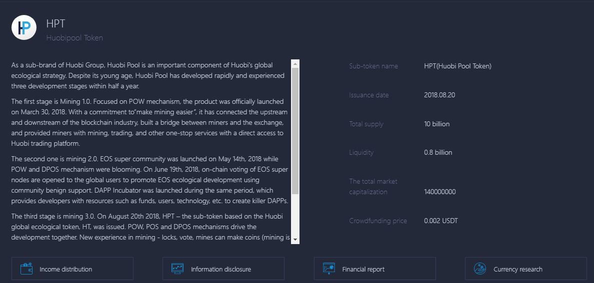 암호화폐 거래소 후오비 산하 후오비 채굴 풀이 19일,( 싱가포르 시간) 글로벌 생태계 토큰 HPT(Huobi pool token)를 발행했다고 발표했다. HPT의 총 발행량은 100억개다. 이는 기존의 후오비 토큰(HT) 시스템을 기반으로 한 토큰으로, HT 보유자들에게 전체 HPT의 20%를 에어드롭 할 예정이다. 또한 향후 이용자들은 후오비 채굴 풀 플랫폼에서 채굴 해시 파워를 보유할 수 있게 되며, 이에 따라 얻을 수 있는 HPT 양이 결정된다. 후오비 풀 해시 파워를 획득할 수 있는 방법은 다음과 같다. 1. EOS, TRX, ONT 등 특정 토큰을 보유 2. EOS, TRX, ONT 등 특정 토큰의 노드 투표 참여 3. 획득한 해시 파워에 따라 채굴 풀에 참여할 수 있으며, 매일 채굴할 수 있는 양이 정해진다.