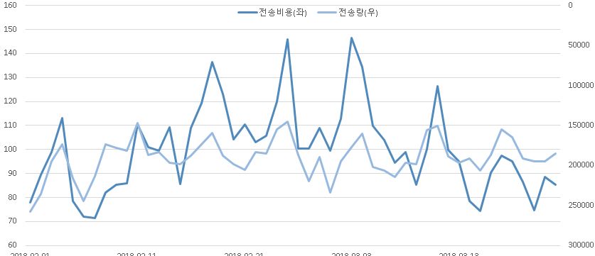 (전송비용과 전송량 두개가 같이 올라가고 같이 내려가는 것처럼 보이거든요)