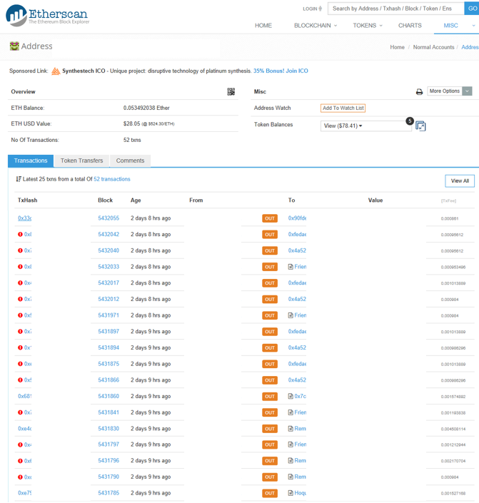 오늘 우울한 일이 생겼습니다. 마이이더월렛 계정을 해킹 당해 지갑에 보관하던 토큰들을 도난 당해 버렸습니다ㅠㅜ (이더스캔으로 보니 락 걸린 토큰은 몇 번 실패했네요)