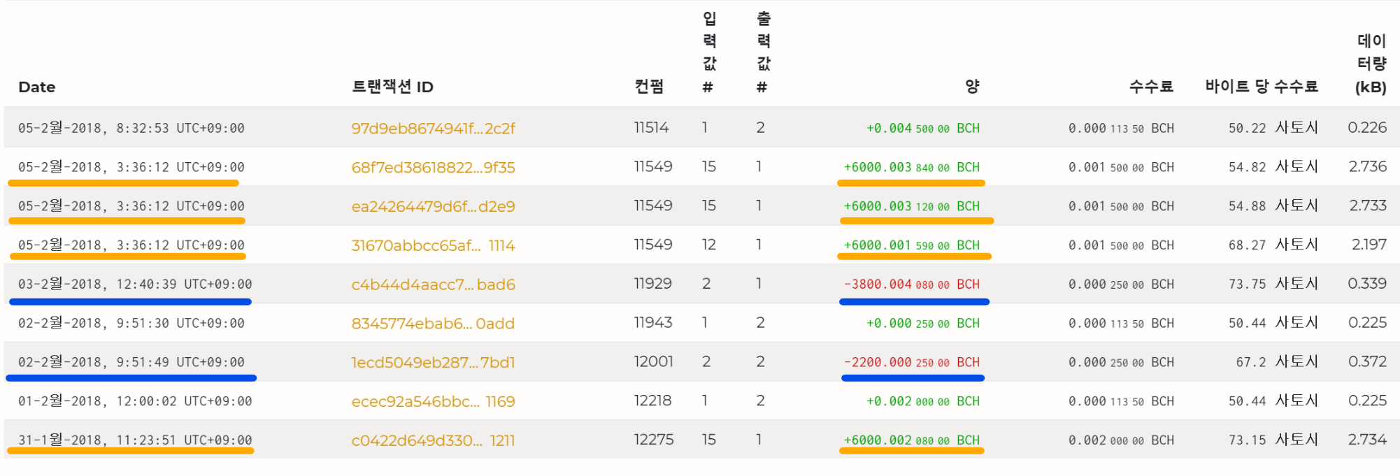 위에 두 사진은 BCH의 이동 기록입니다.