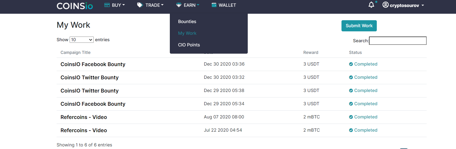 Please allow some time for your work to be verified. When your work is approved by the Marketer, your Bounty reward will be credited to your CoinsIO wallet and you can retrieve it at any time. CoinsIO charges a 10% fee on your bounty rewards earned on our platform.