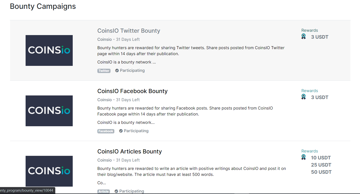 1 Browse the available bounty campaigns and chose one to participate in.