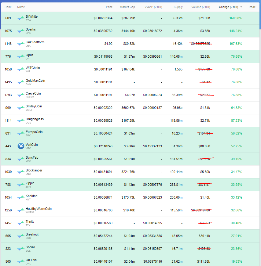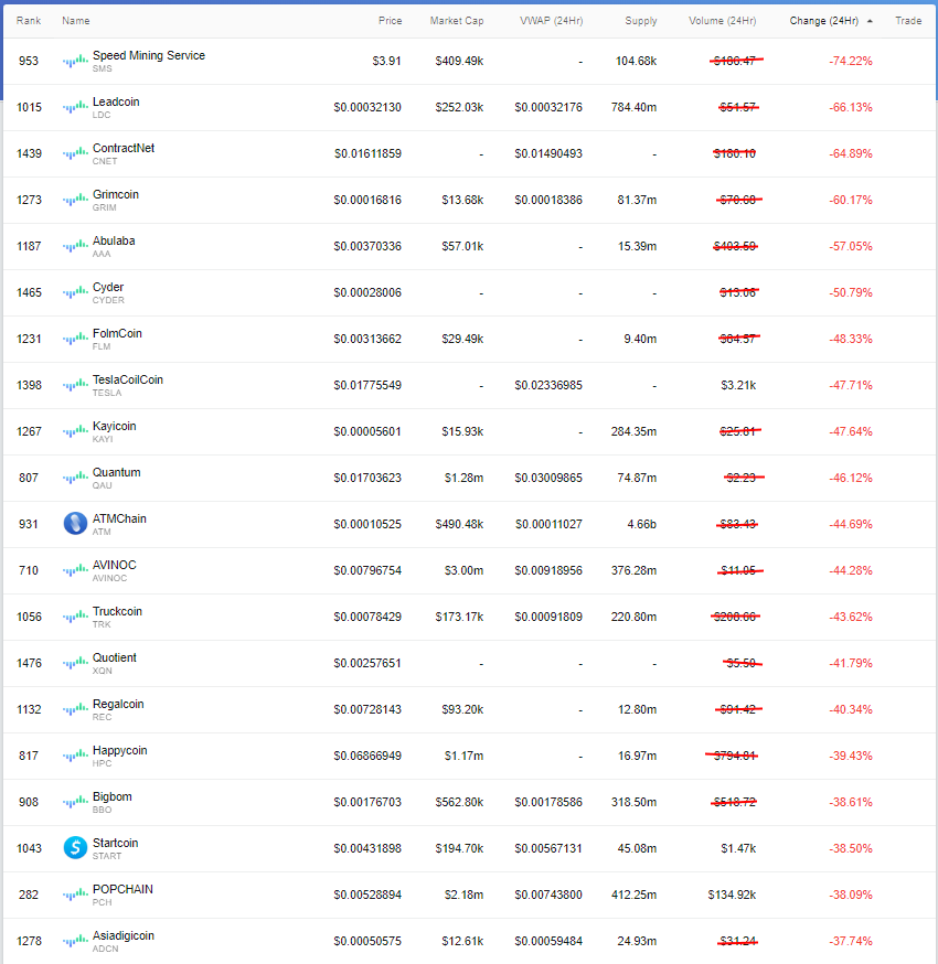Almost nothing here worth noting, except maybe StartCoin sadly losing -38.5%