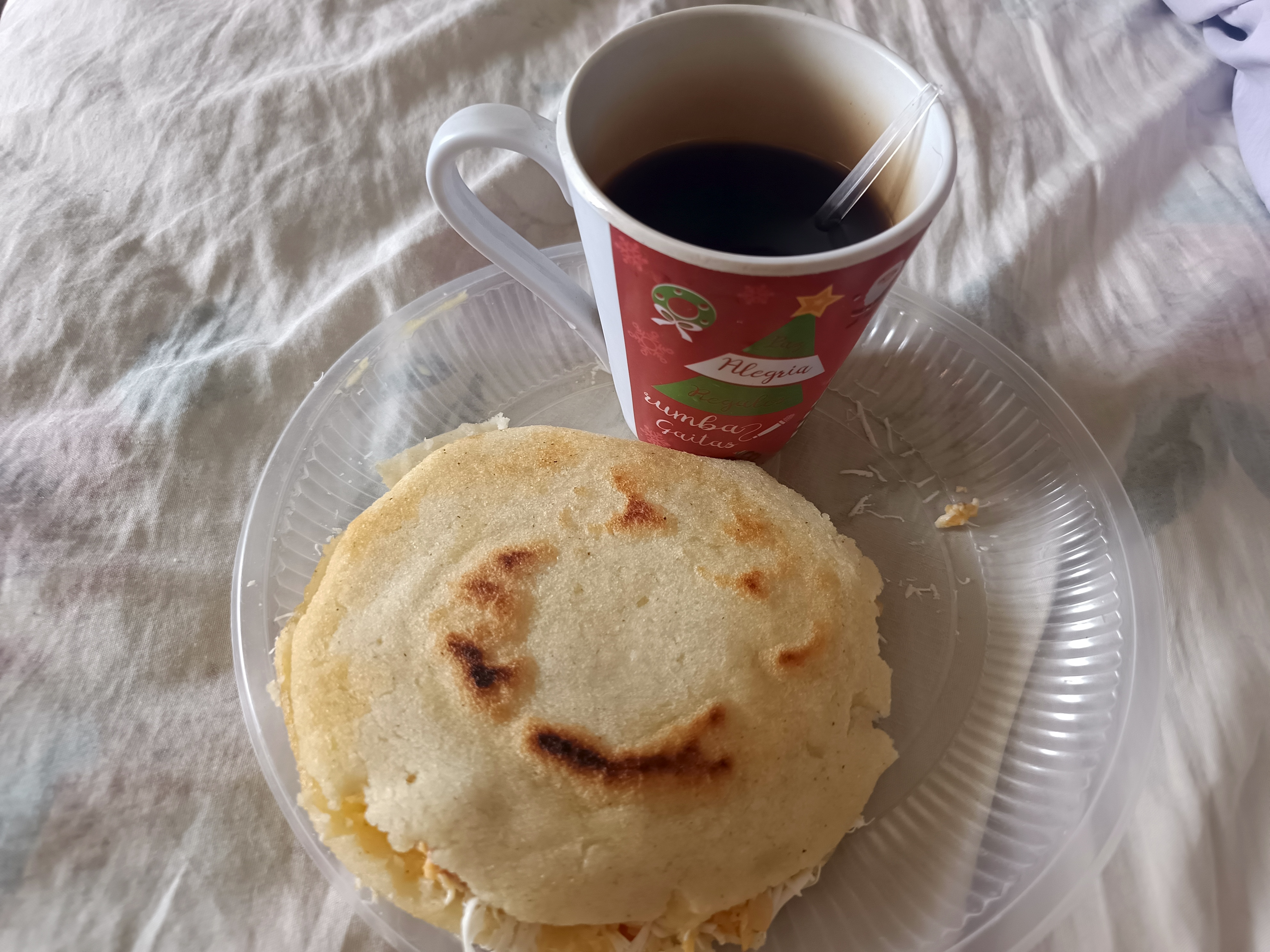 Antes de salir de casa Me desayuné, hoy comimos desde la cama porque mi esposa no se quiso levantar, y después de desayunar le hice una videollamada a mi hermano que se encuentra algo quebrantado de salud y estuve hablando un rato con él, para luego salir a trabajar.