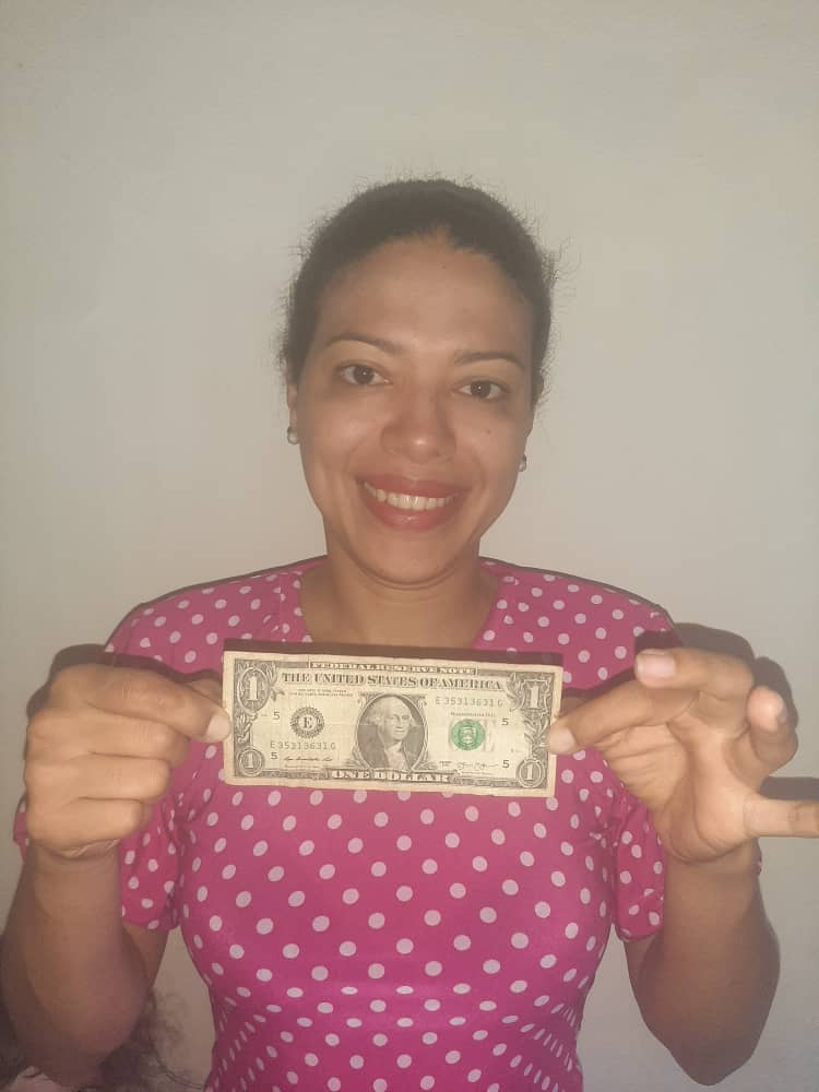 Esta soy yo sosteniendo el preciado activoHace 7 años se podía hacer con 1 dólar lo que hoy se puede hacer con 10... sin embargo, dada la situación económica del país siguen siendo algo emocionante que te regalen 1 dólar (no me molesta si me quieres regalar algunos jejeje), por ejemplo, si quitamos las bonificaciones y cosas que no aportan a las prestaciones sociales de un trabajador 1 dólar es más del 20% del salario mínimo.