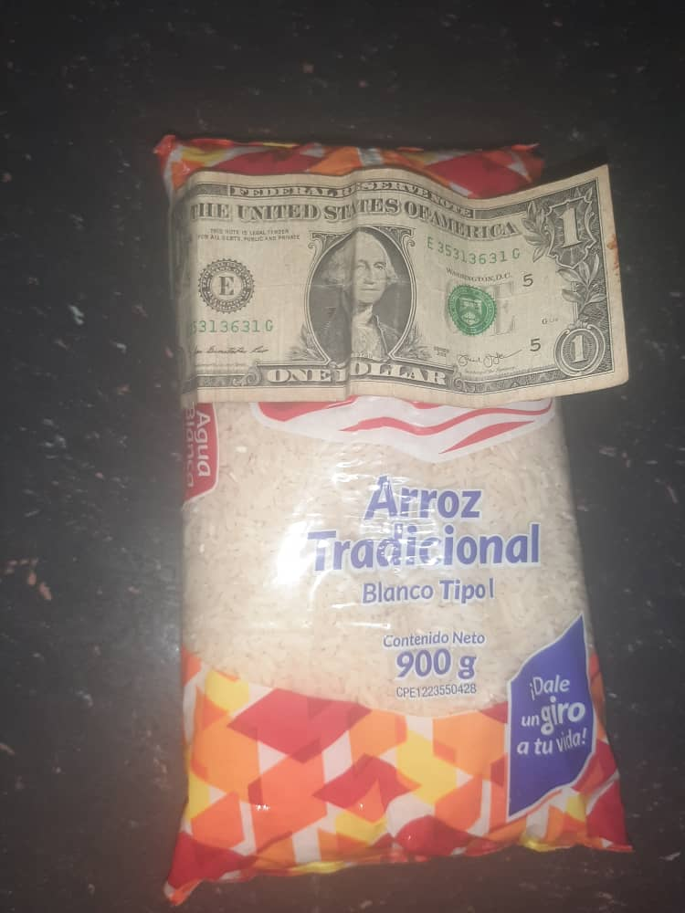 Puede ser 900g de arroz por ejemplo, es un producto de primera necesidad que se puede adquirir con 1 dólar,