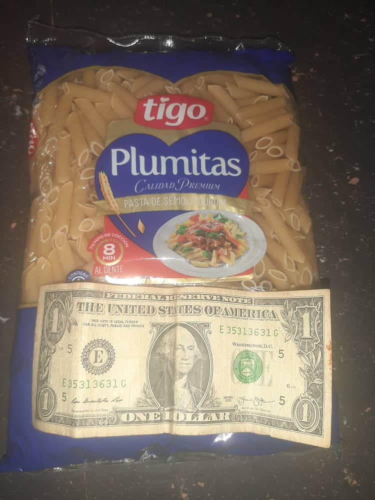 También alcanza para 1/2Kg de pasta, rinde menos pero puede resolver un almuerzo para la familia, aunque 1Kg de harina de maíz puede resolver desayuno y cena. Todos los productos mencionados se pueden adquirir con 1$ aunque obviamente tendría que escoger sólo 1 porque tengo sólo 1$ ¿Verdad?