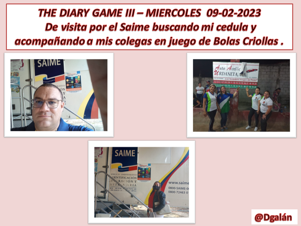 The Diary Game III – JUEVES 09 -03-2023 – DE VISITA POR EL SAIME BUSCANDO MI CEDULA Y ACOMPAÑANDO A MIS COLEGAS EN JUEGO DE BOLAS CRIOLLAS.