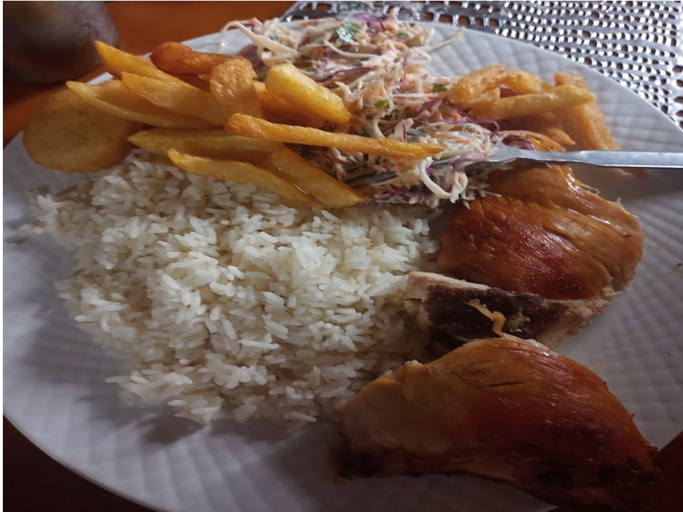 Un poco contrariado por no tener la cedula nos fuimos a la casa para descansar un rato y poder almorzar, por el camino decidimos que hacer otras cosa y nos detuvimos para comprar un servicio de pollo asado para compartir los dos y poder almorzar, la verdad estaba muy bueno .