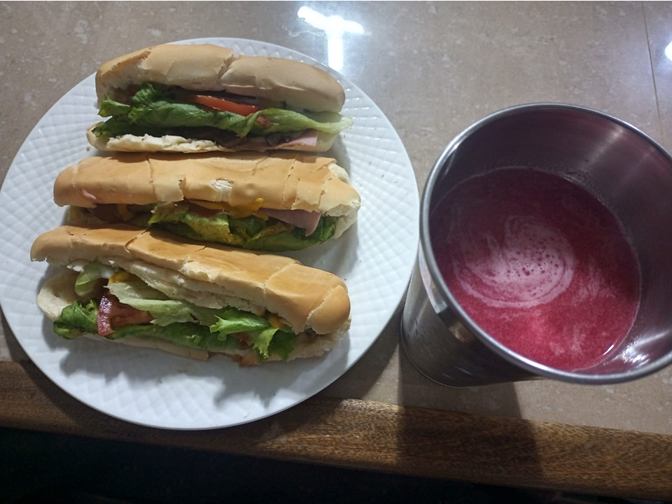 Hoy como de costumbre me levante como a las 6:00 am de la mañana dándole gracias a Dios por un día más de vida, despertarme es inevitable que no lo haga ya que el despertador del teléfono de mi esposa suena y lo tengo al lado de mi cama, ella lo coloca para alistar a su nieta para ir al colegio, luego de bañarse y hacer mis haceos pude desayunar unos ricos panes con jamón y queso, acompañado con jugo de mora que estaba muy rico ya que deje el refresco por motivo de salud.