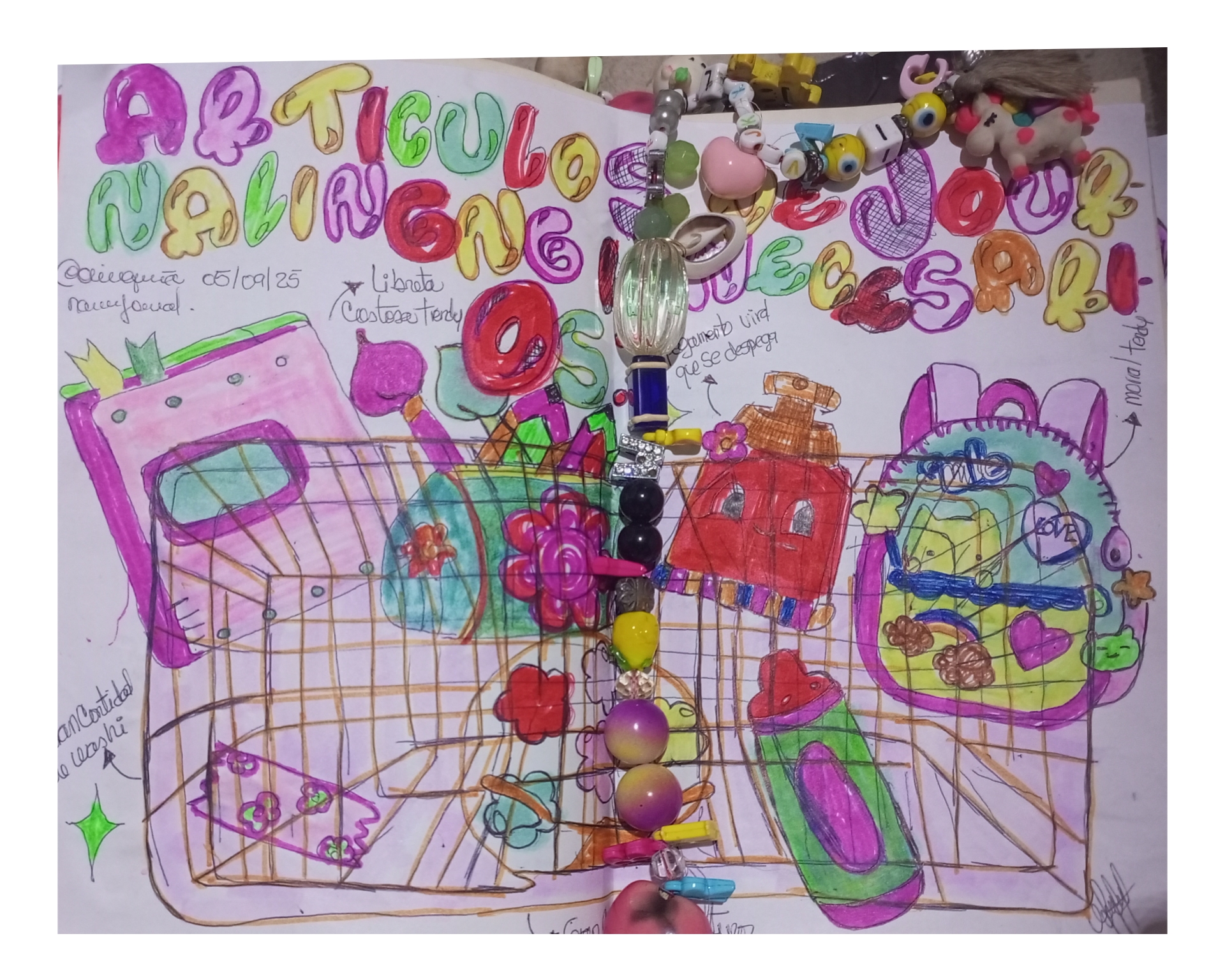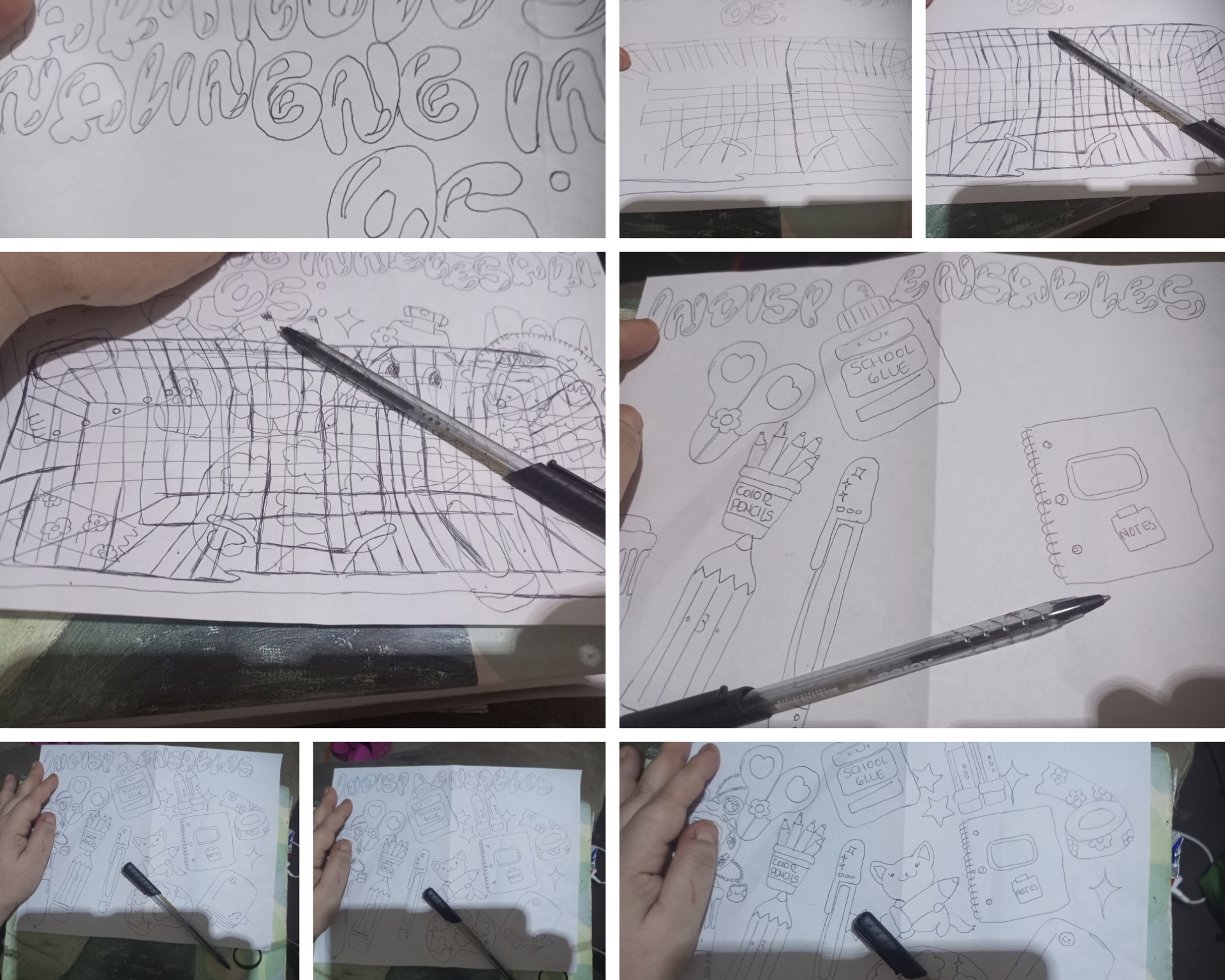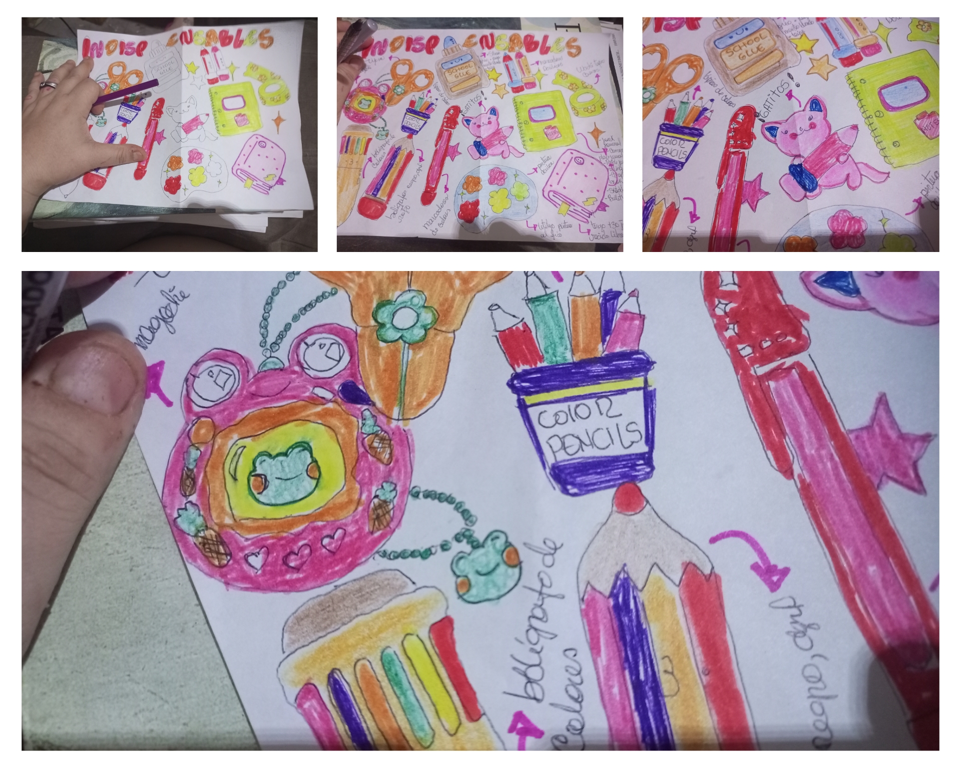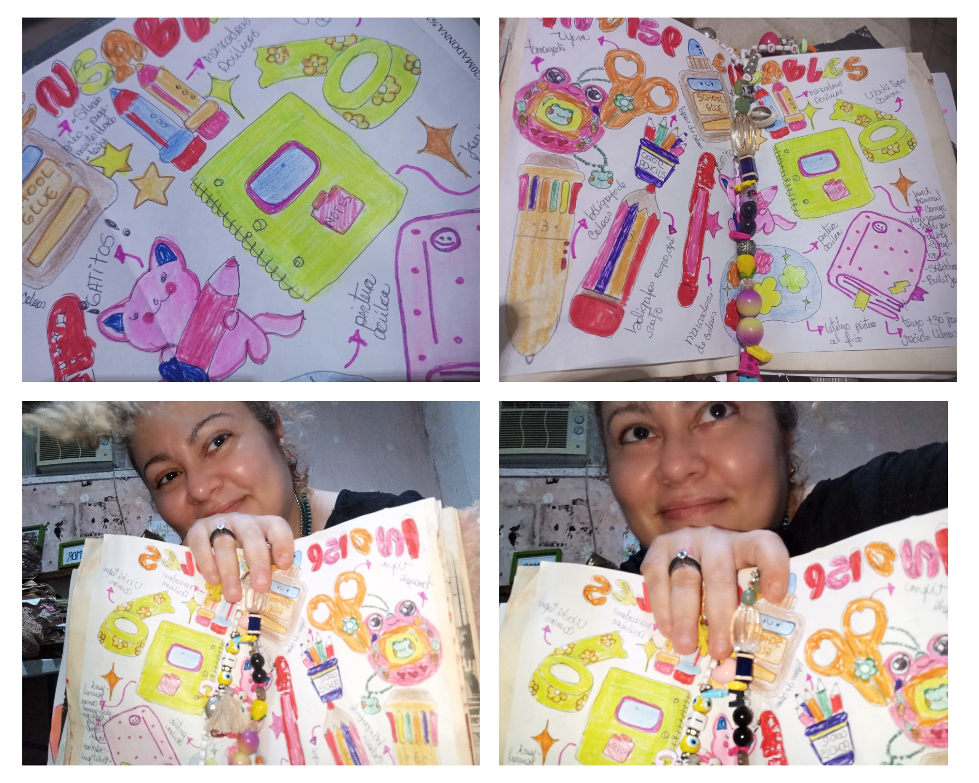 Por ejemplo éstos prompts qué hice se llaman "artículos necesarios e innecesarios para hacer journaling", en vez de imprimir fotos de los elementos, decidí dibujarlos, aquí les mostré mi proceso.