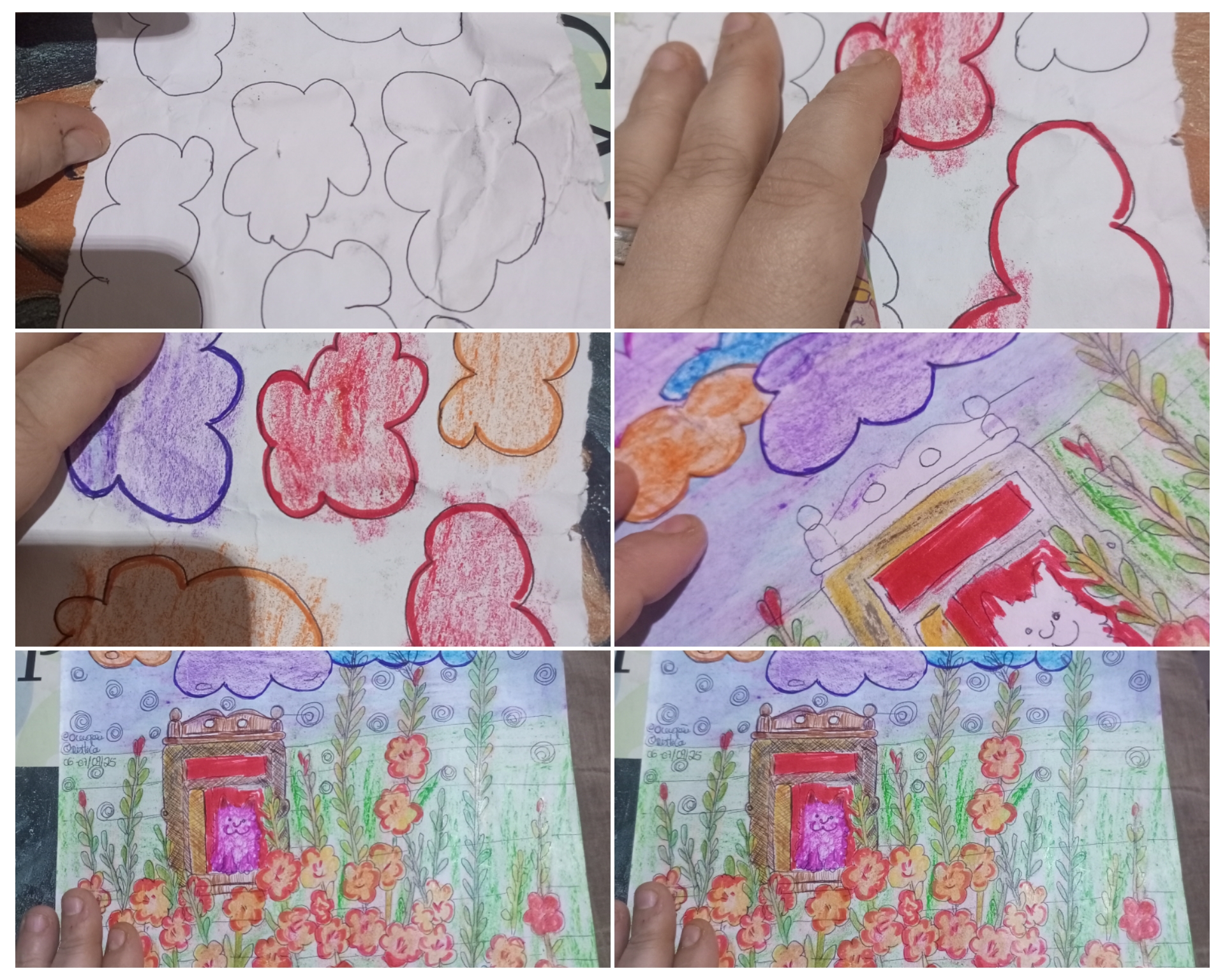Esto es considerado sketchbookart, pero yo metí la pata con las nubes y zas! decidí aplicar principios del journaling y dibujé aparte nubes recorte y pegué encima de las anteriores y eso automáticamente convierte el trabajo en dibujo para journaling y no en sketchbookart, nótese la palabra "art", "arte" y el arte, al menos en éste mundo creativo, no contiene enmendaduras, mientras que en el mundo del journaling las imperfecciones son muy bien recibidas, ya que al final del día la idea es desborda nuestra creatividad.