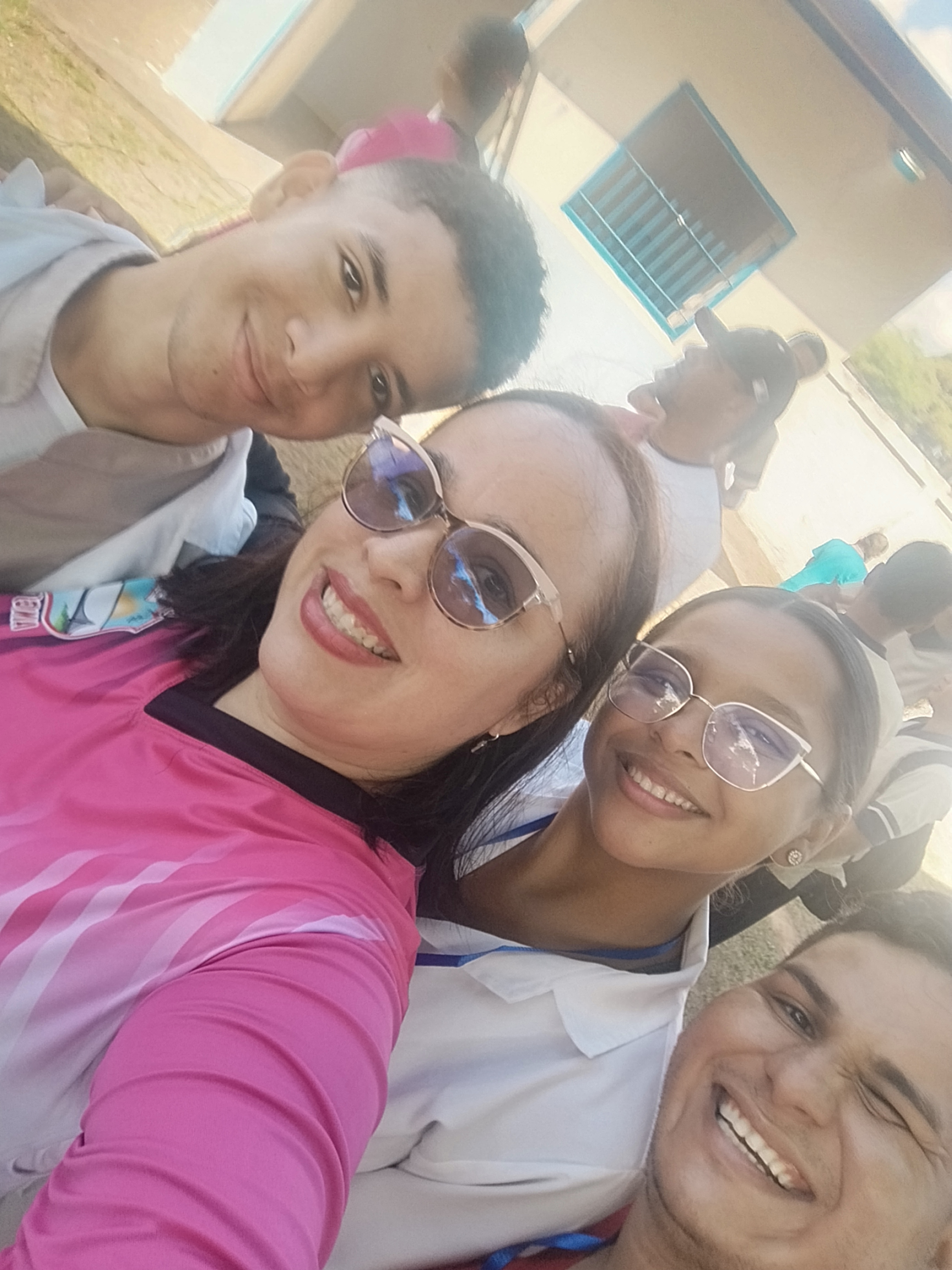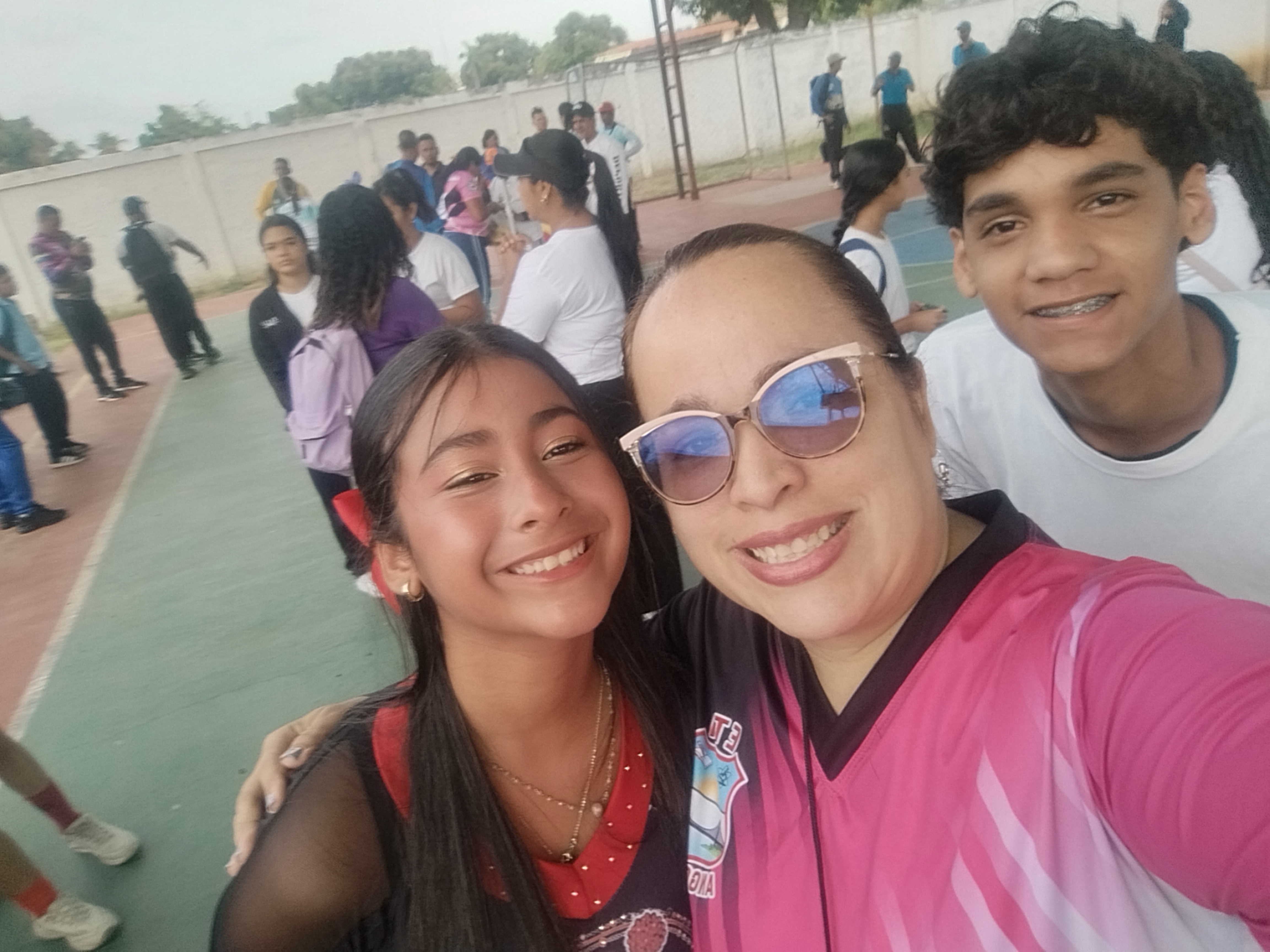 A eso de las 9 se recogió el mobiliario ya que iniciaría la inauguración de los juegos interparroquiales; dónde asistirían un total de 15 instituciones a darle brillo a ese intercambio deportivo. Cuál es mi sorpresa que llegaron dos de mis sobrinos mayores representando el liceo donde estudian y no podía dejar de tomarme la foto con ellos mientras el calor se ponía de manifiesto.